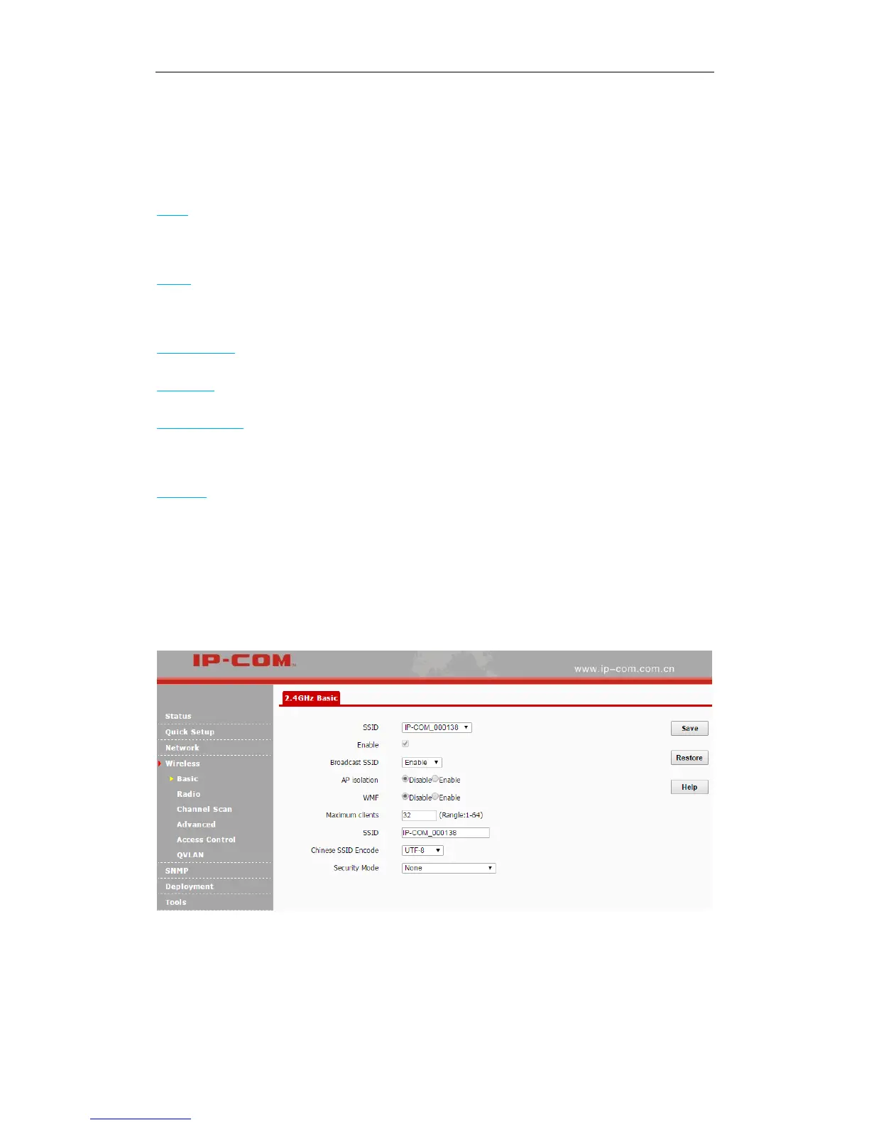 Basic: Configure basic information for your AP, including SSID (WiFi name), clients, encryption