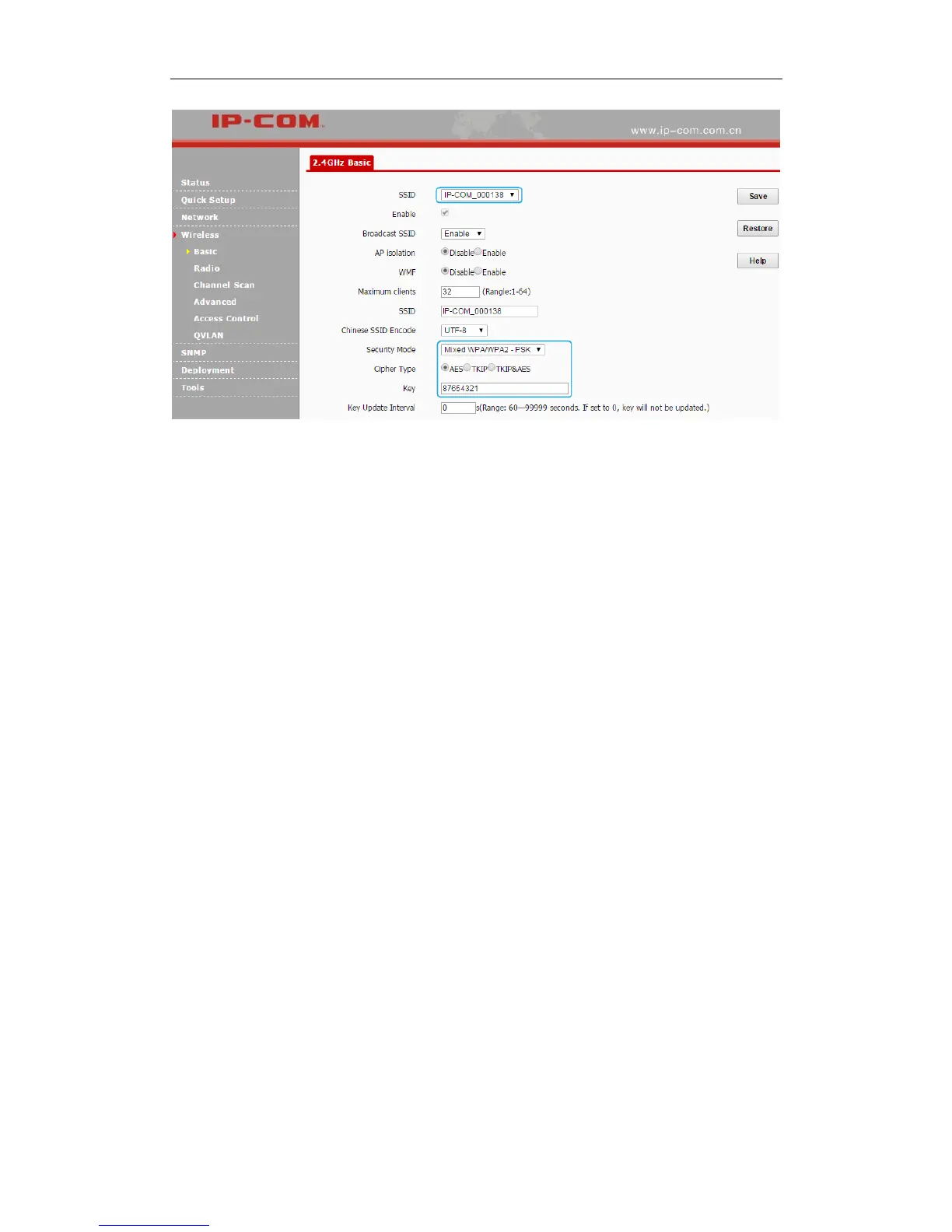 Cipher Type: Select the cipher type. WPA-PSK: AES and TKIP. WPA2-PSK and Mixed