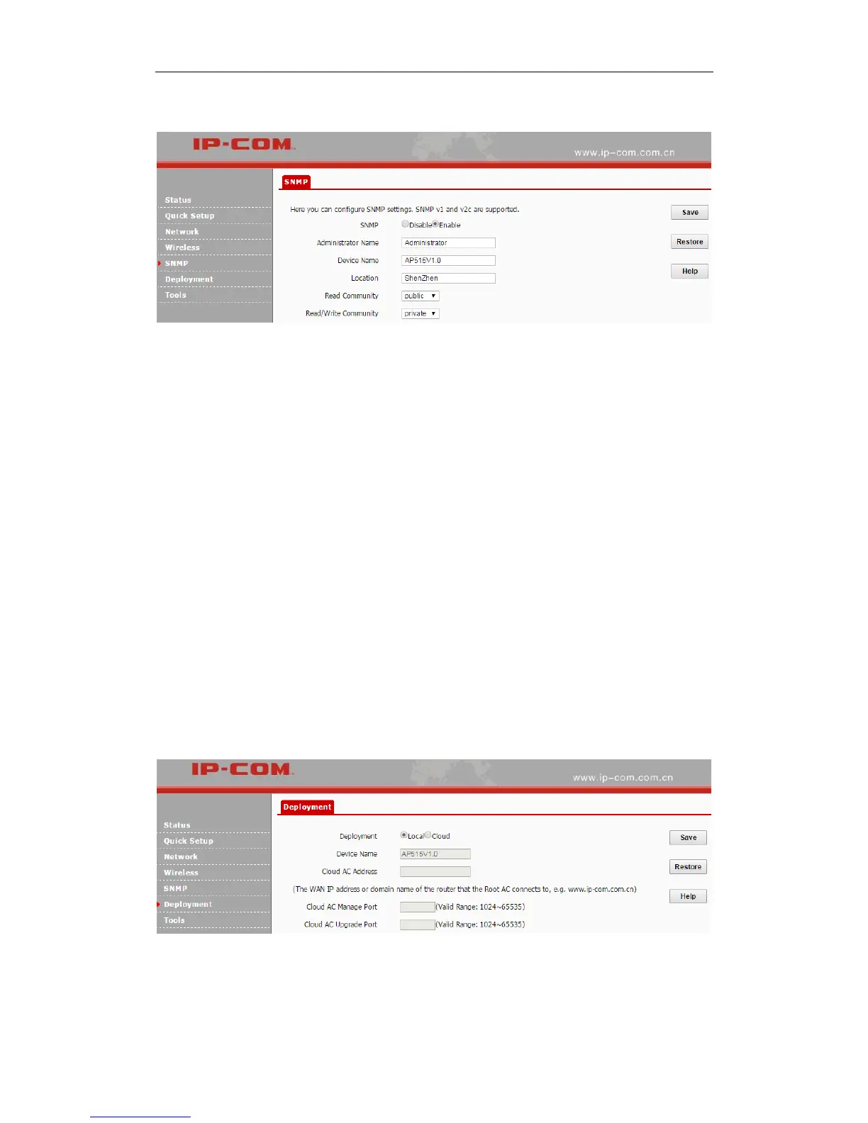 SNMP: Disable/Enable the SNMP function. It is disabled by default.
