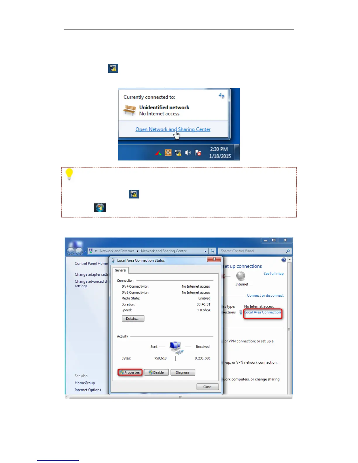 Click Start > Control Panel > Network and Internet > Network and Sharing Center.