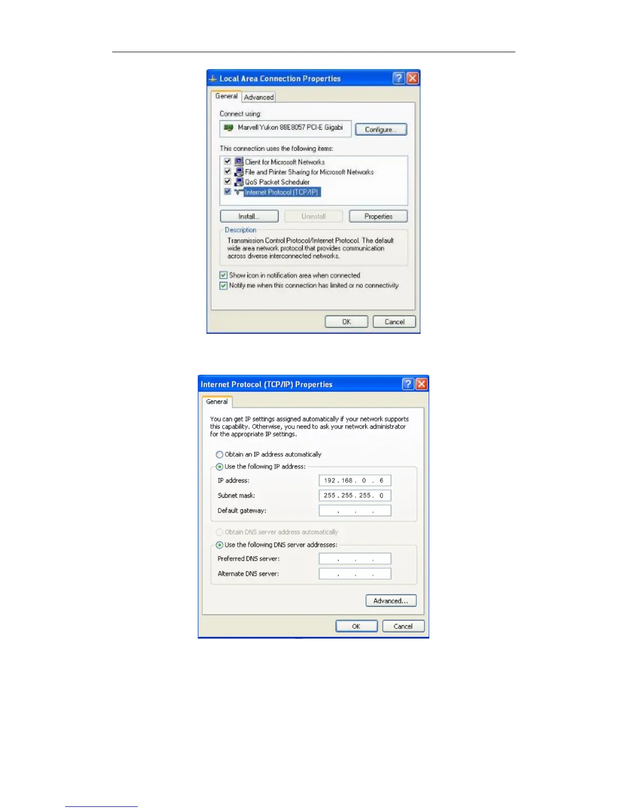 Click OK on the Local Area Connection Properties window.