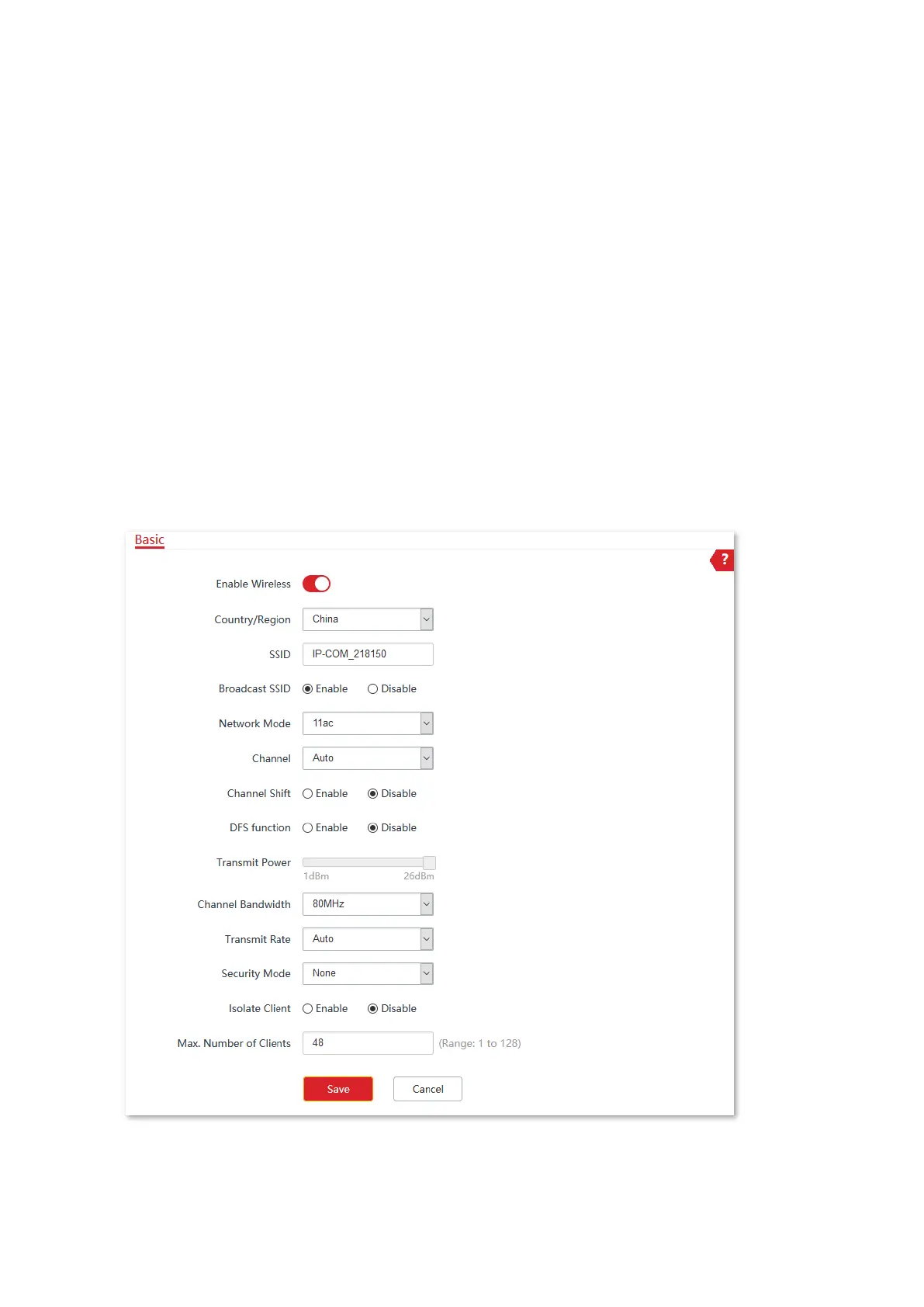 This module enables you to set basic wireless settings of the CPE, including SSID-related