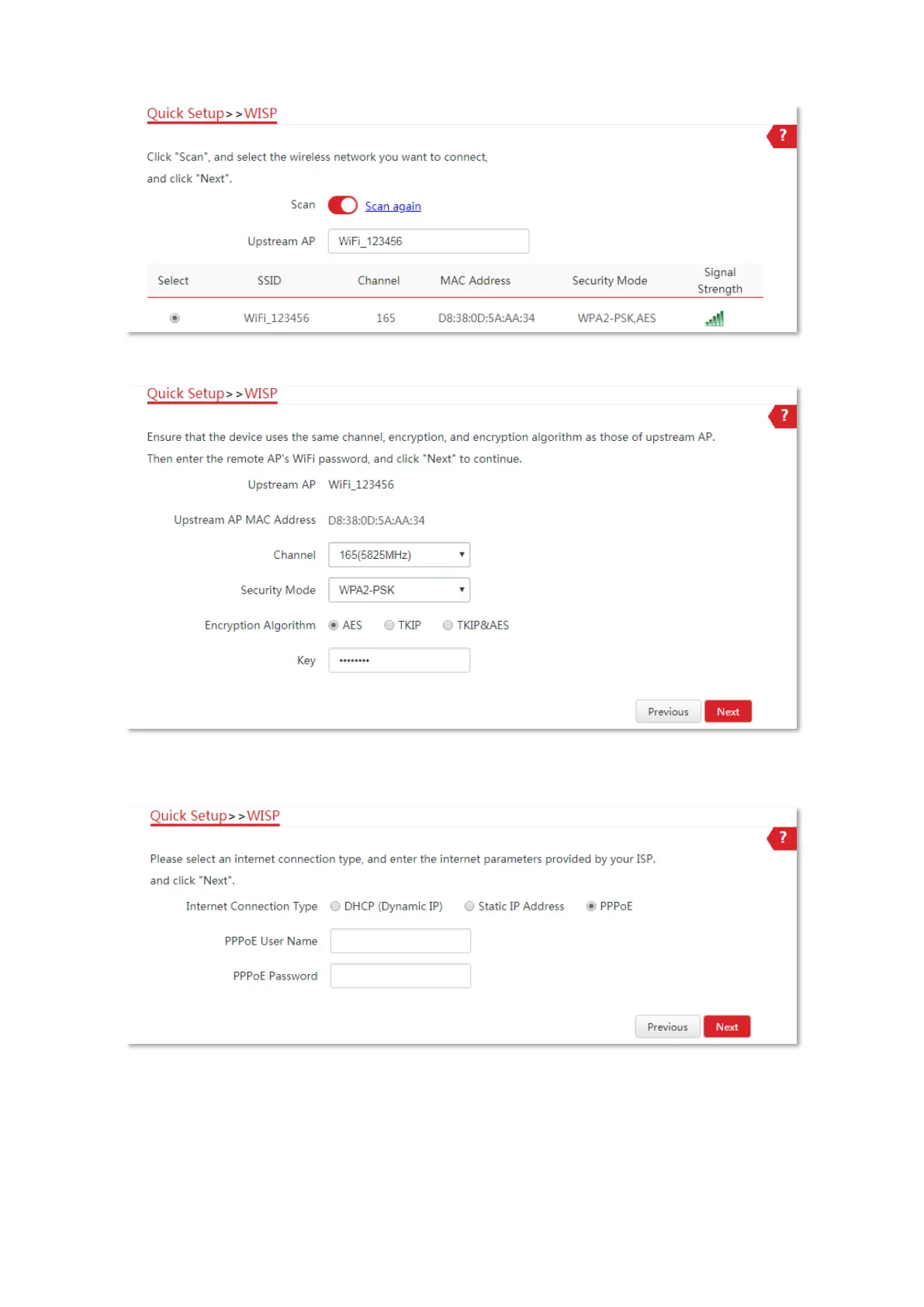 (5) Enter the WiFi password of your ISP hotspot in the Key text box, and click Next.