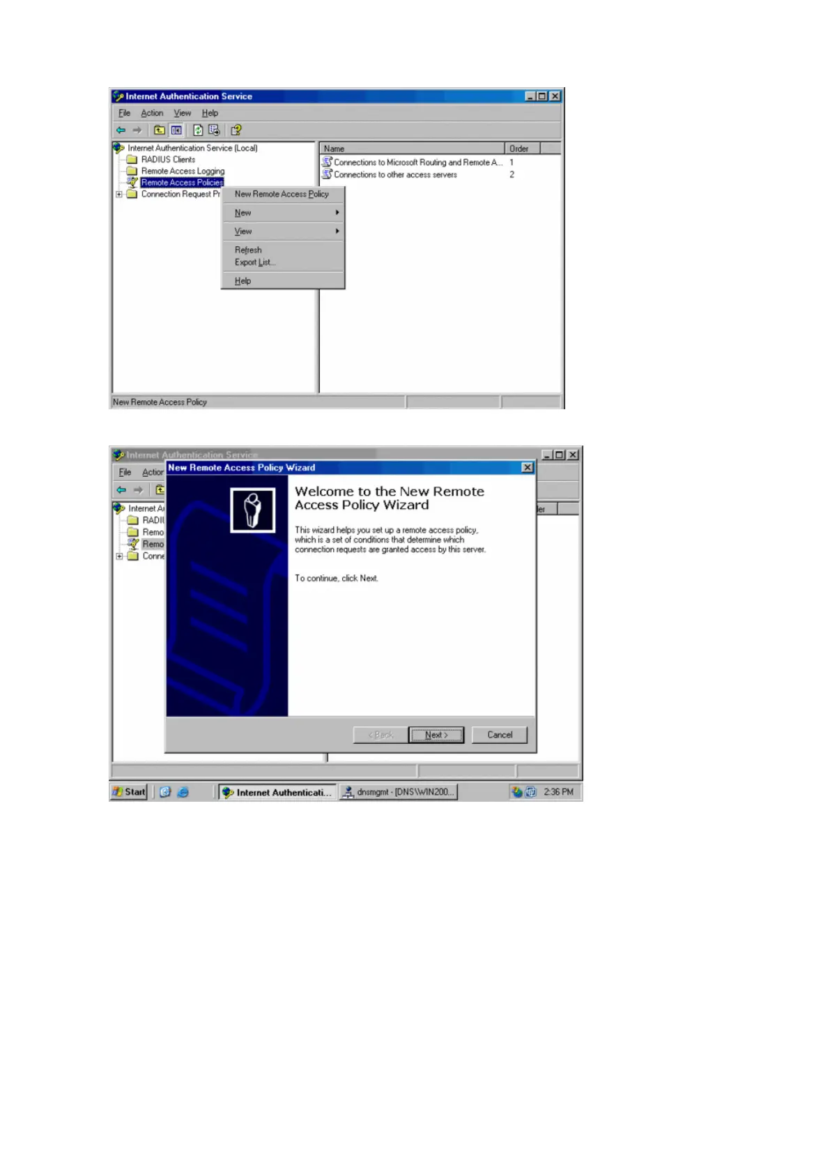 (2) In the New Remote Access Policy Wizard dialog box that appears, click Next.