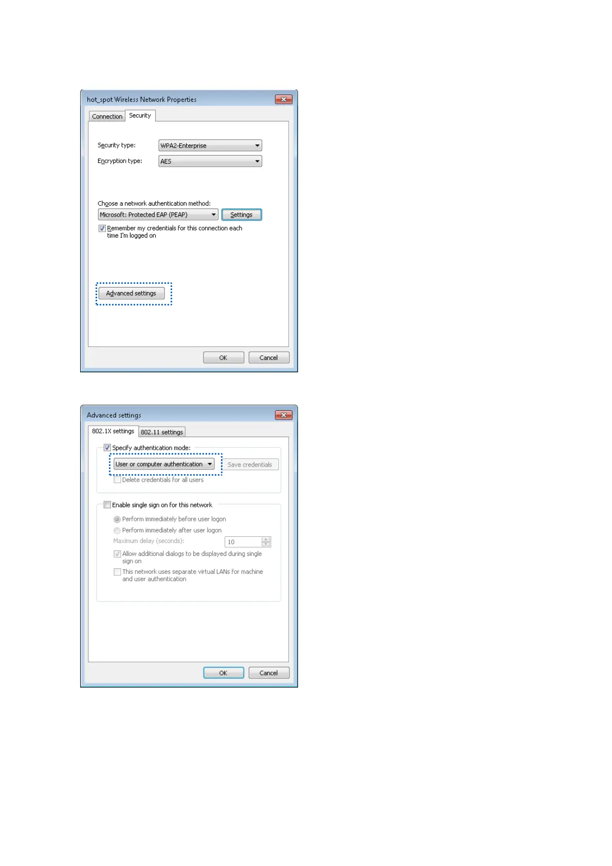 10. Select User or computer authentication and click OK.