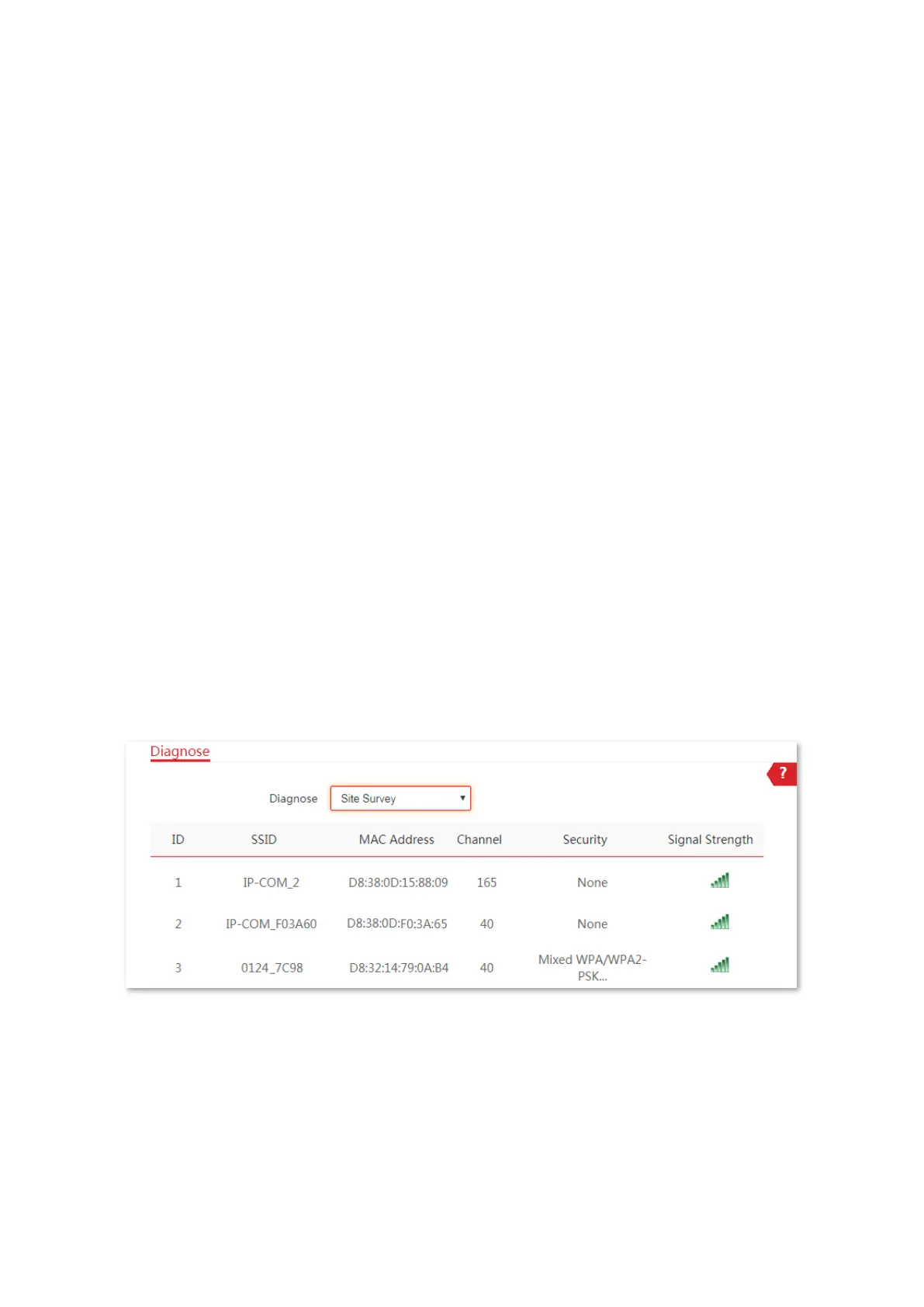 2. Select Site Survey in the Diagnose drop-down list menu.