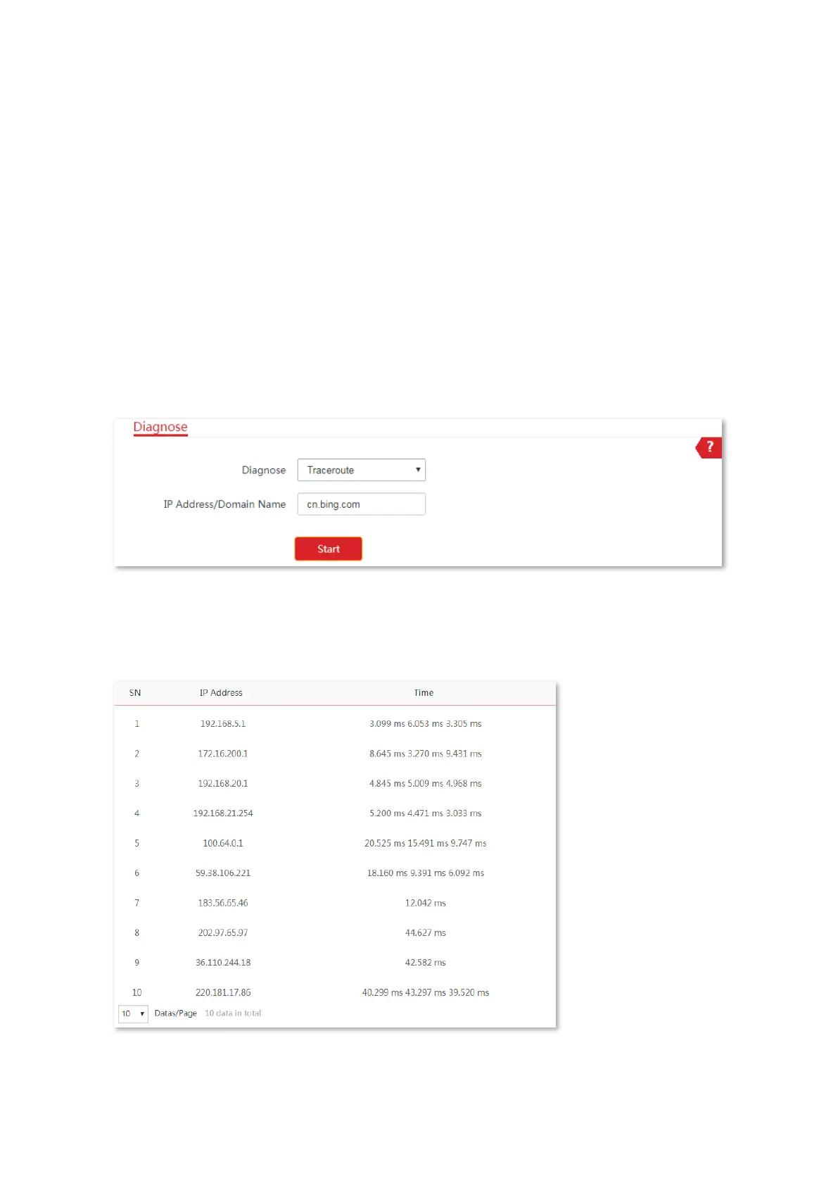 2. Select Traceroute in the Diagnose drop-down list menu.