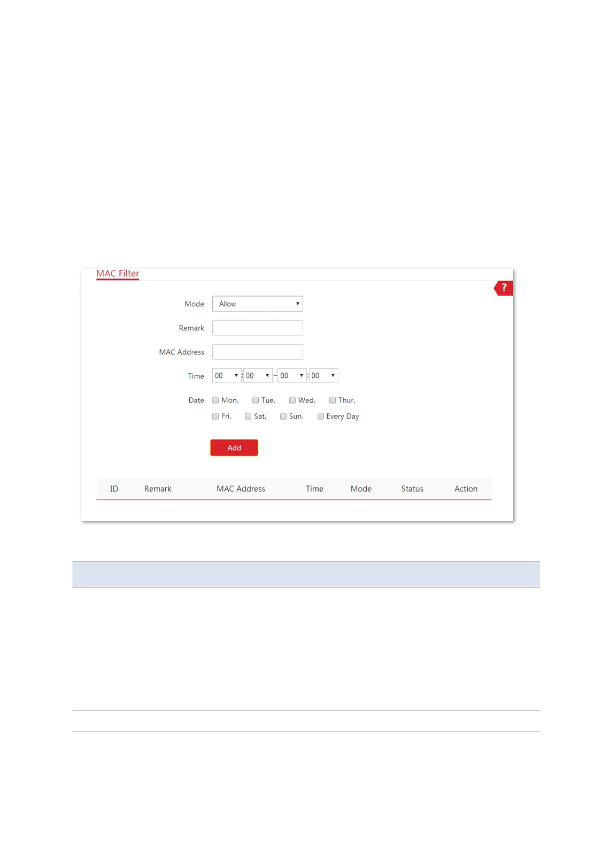 Disable: Disable the MAC Filter function.
