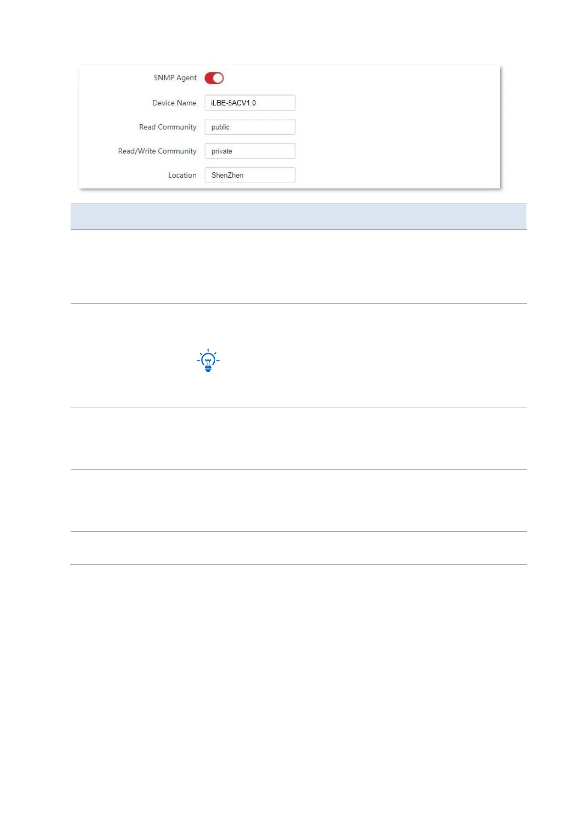 It specifies whether to enable the SNMP agent function of the CPE. By default,