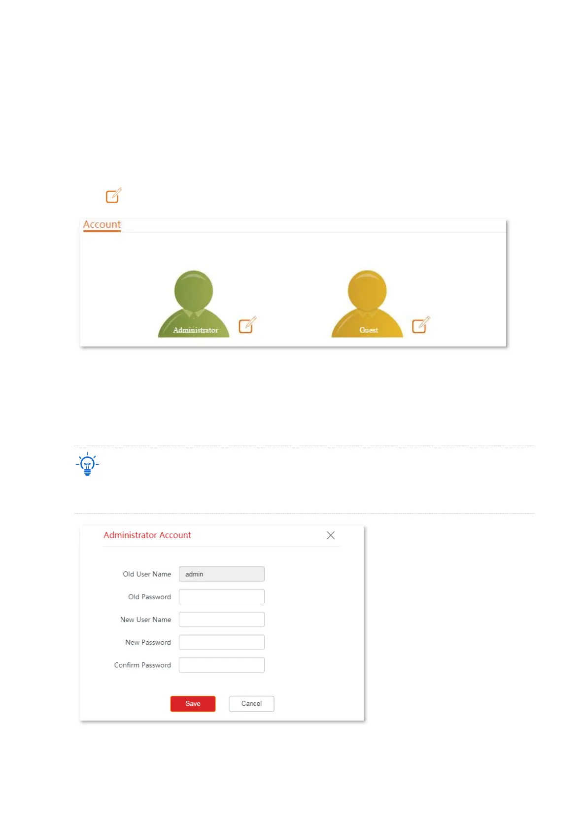 administrator account, you can modify and view the settings of the CPE while with the guest