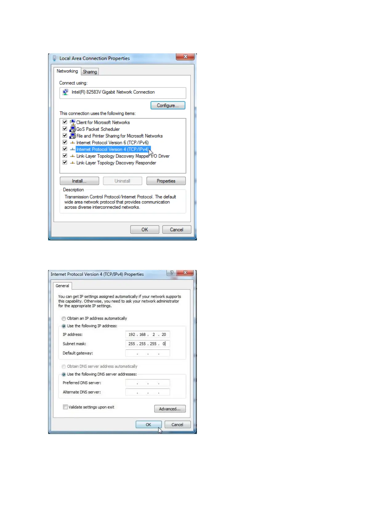 5. Select Use the following IP address, set the IP address to 192.168.2.X (X ranges from 2 to 253),