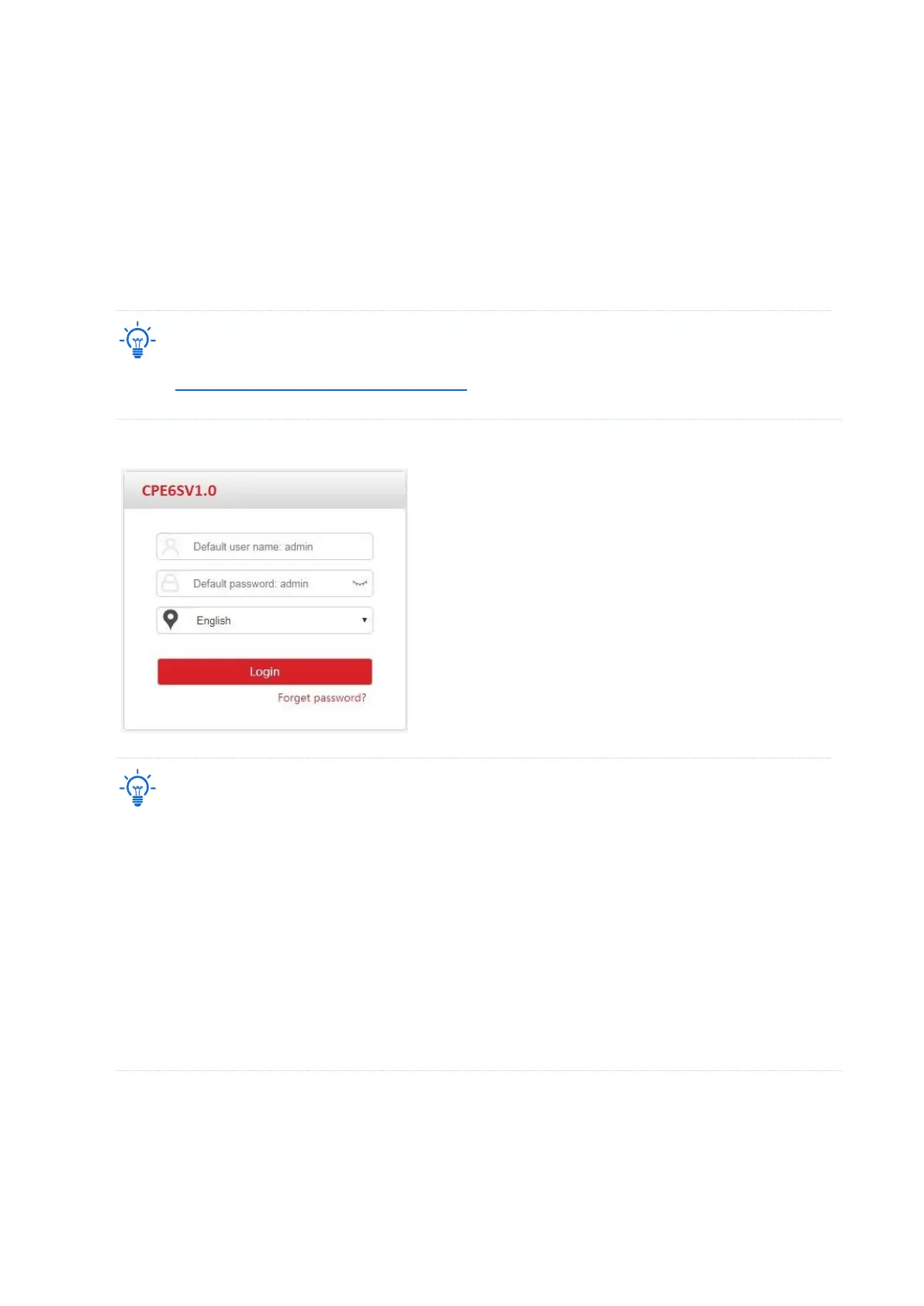 − If more than one CPE is connected, please modify the IP address of each one to avoid the failure to log