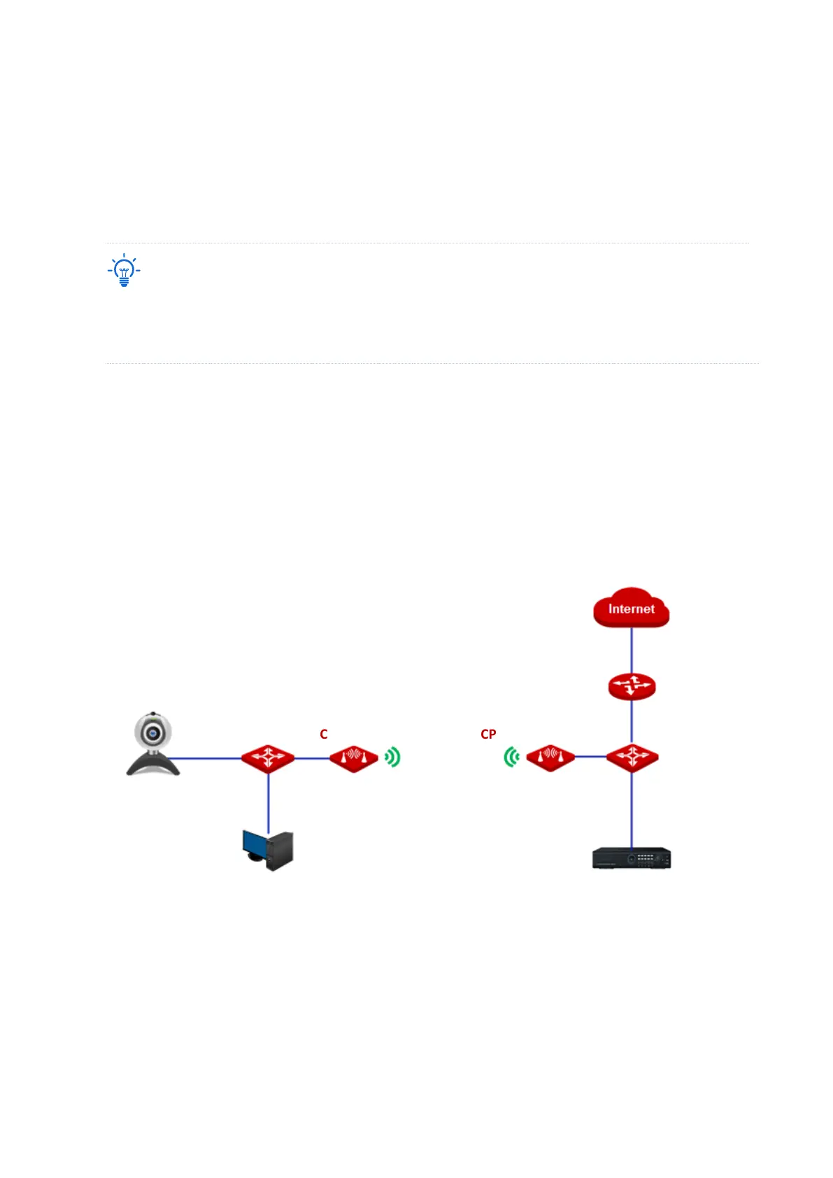 − Set CPE2 to the Client mode, and connect it to IP cameras.