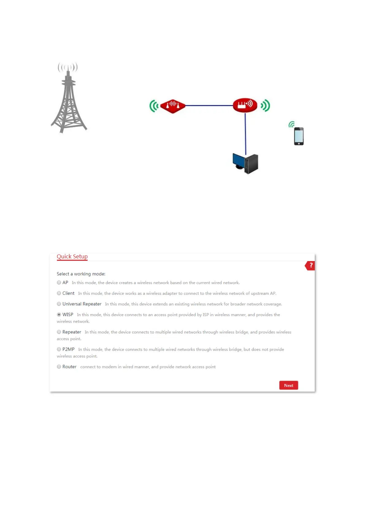 1. Set the CPE to the WISP mode.