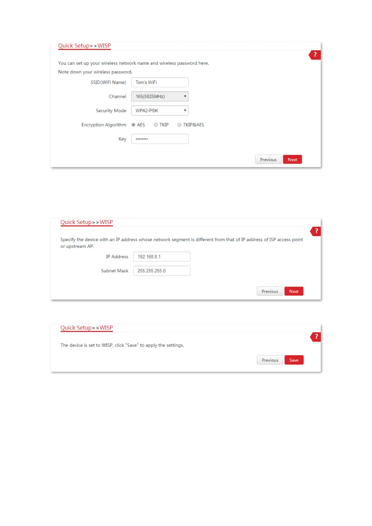 For example, if the IP address of your ISP hotspot is 192.168.2.1, you can set this device’s
