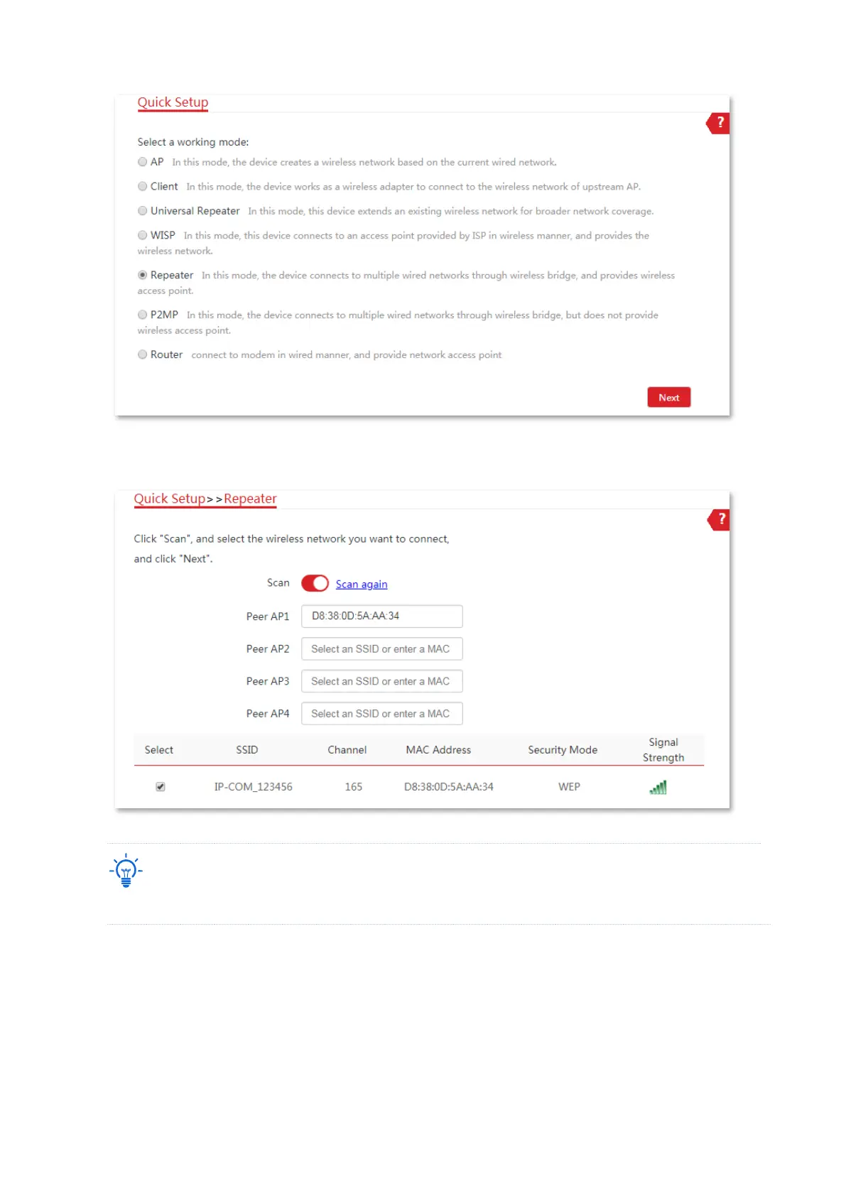 (4) Select the SSID of CPE1 from the list, which is IP-COM_123456 in this example, and click
