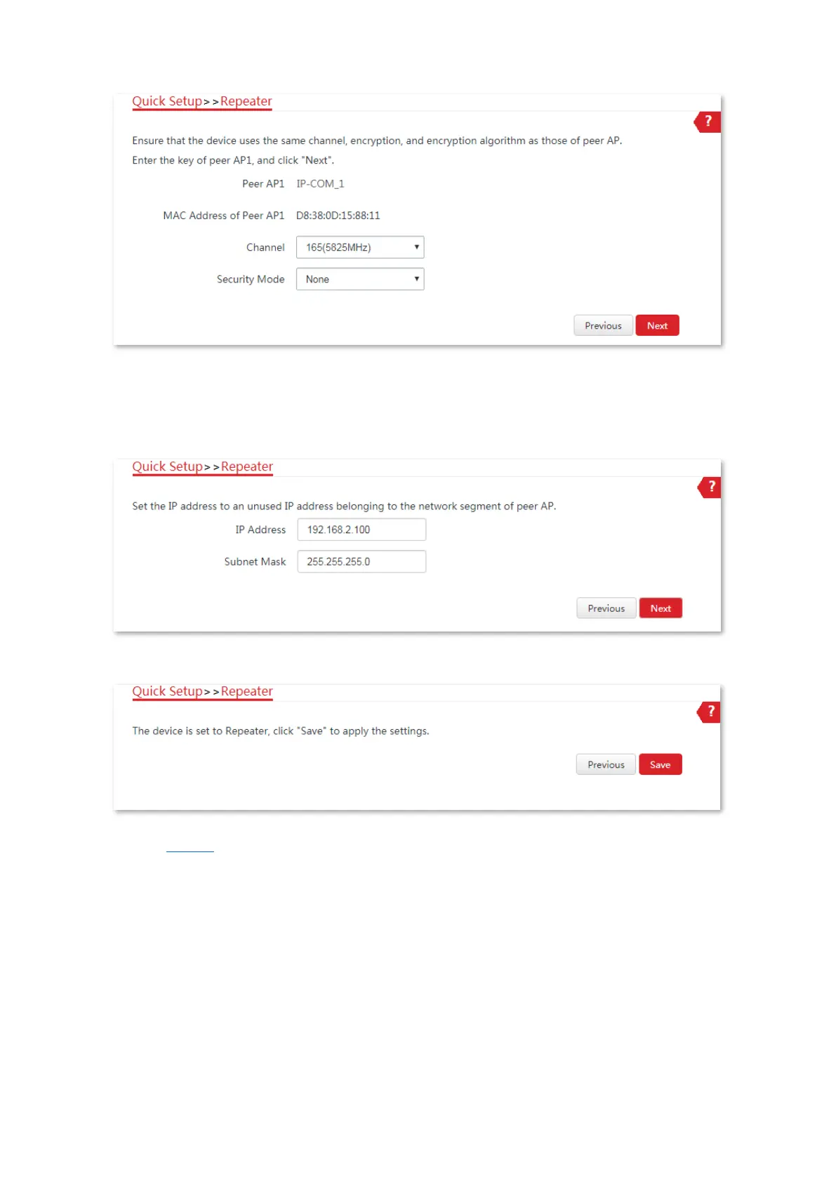 2. Perform Step 1 to set CPE3 to Repeater mode, and bridge to CPE1.