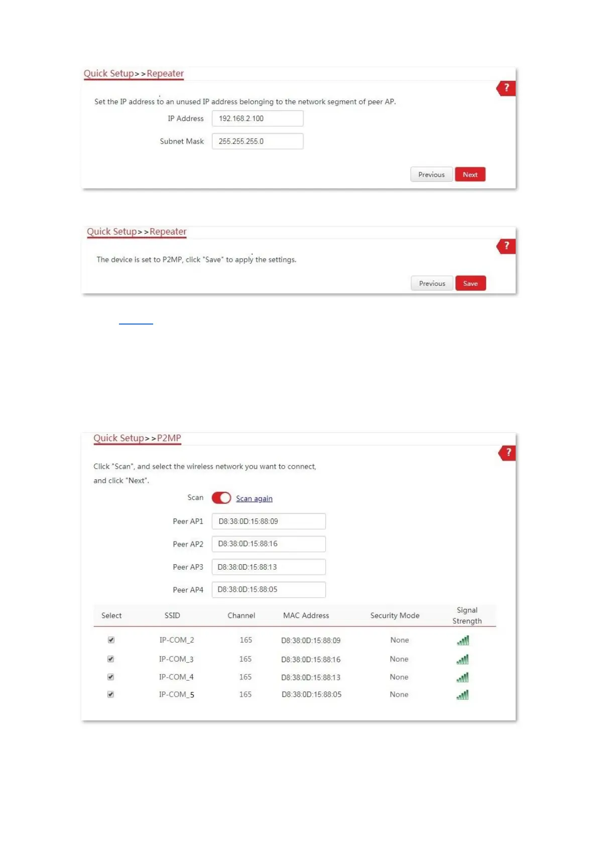 (3) Select the SSID of CPE2, CPE3, CPE4 and CPE5, which are IP-COM_2, IP-COM_3, IP-COM_4