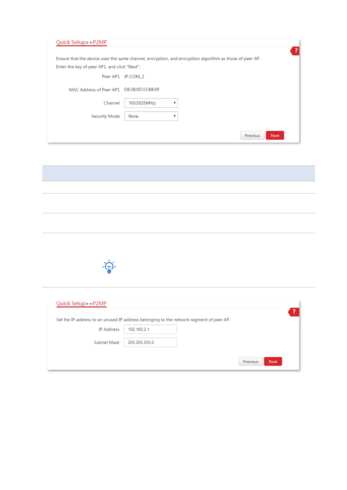 The P2MP mode only supports WEP and None security modes.