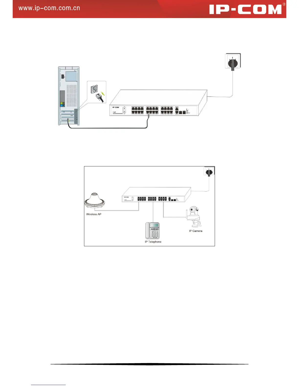Connect PDs (PoE powered devices, for example, 802.3at-/802.3af-compliant AP, IP telephone or IP camera) to the