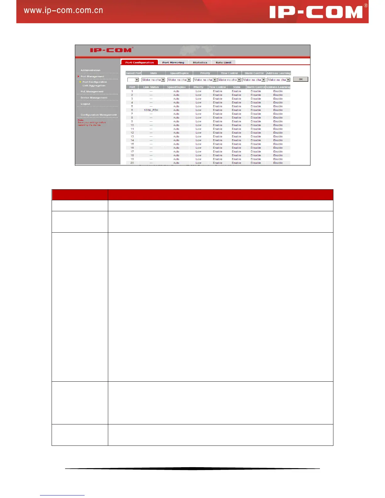 3 port priority levels are provided: High, Low and Make no change. The default