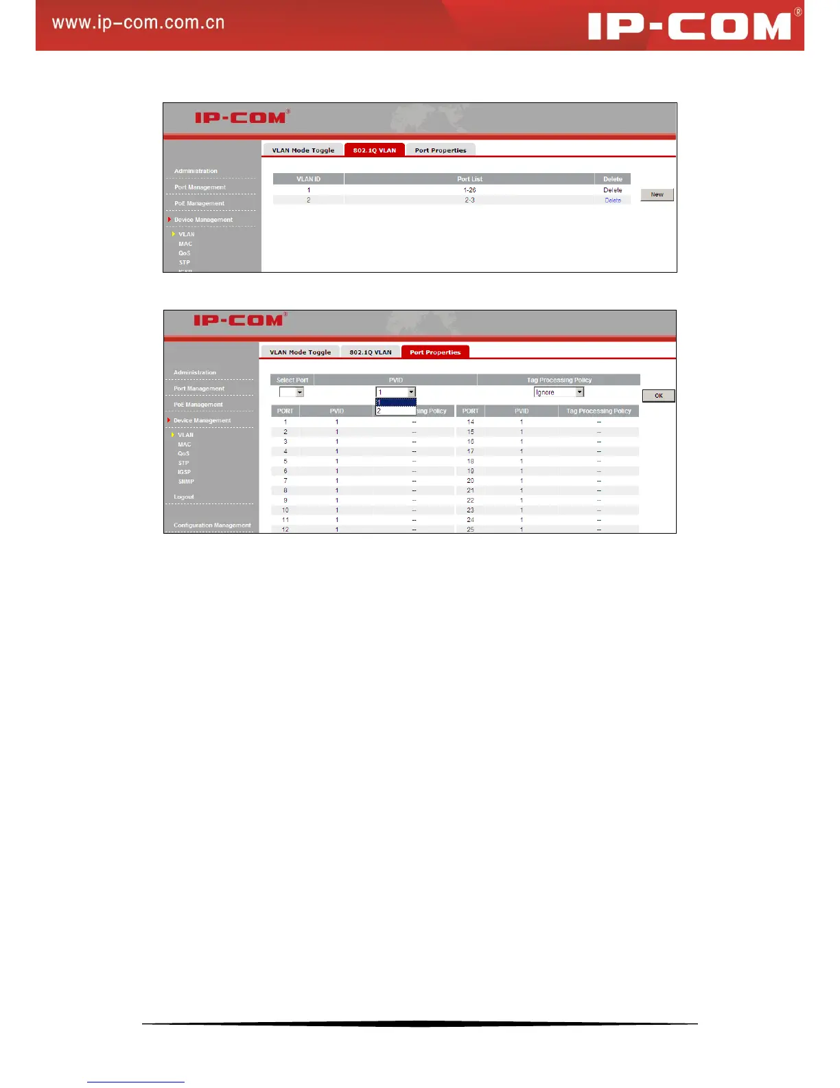 PVID is not affected by VLAN ID. For example, you can assign port 1 to VLAN 1, VLAN2 and VLAN3 but