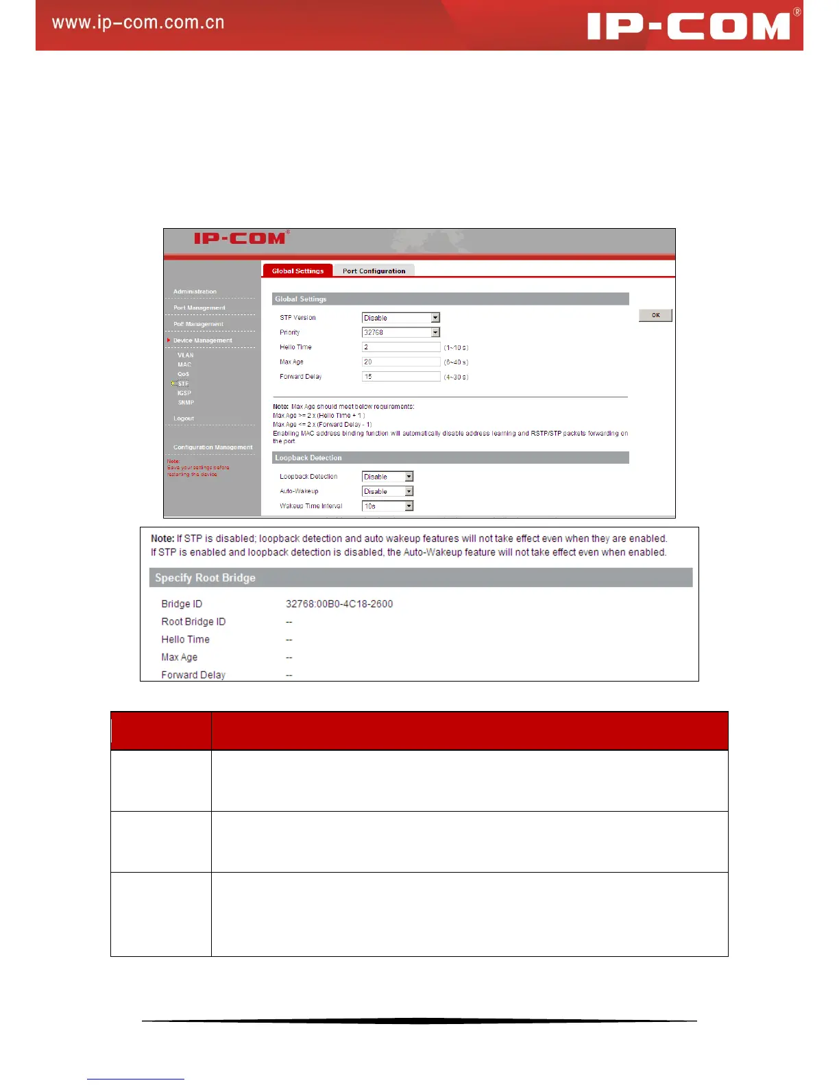 Click Device Management > STP > Global Settings to enter the screen below where you can configure STP