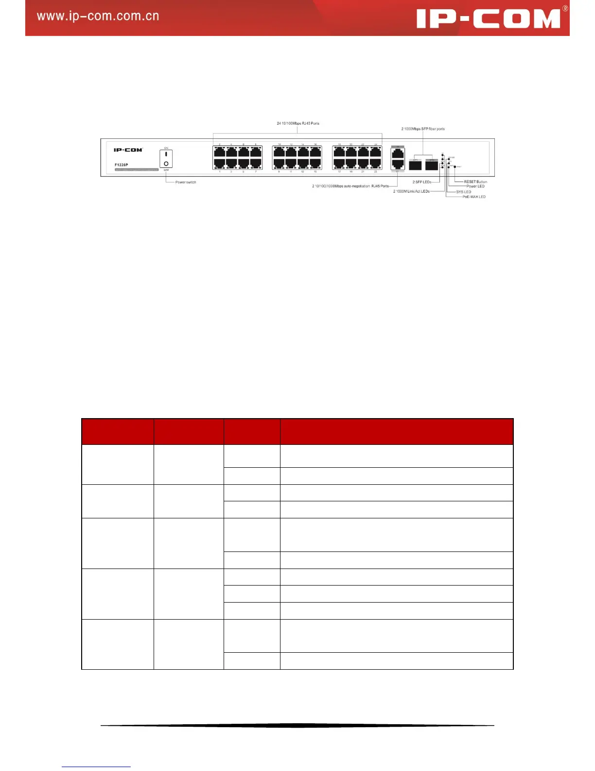 PoE1~24: 24 PoE status LEDs