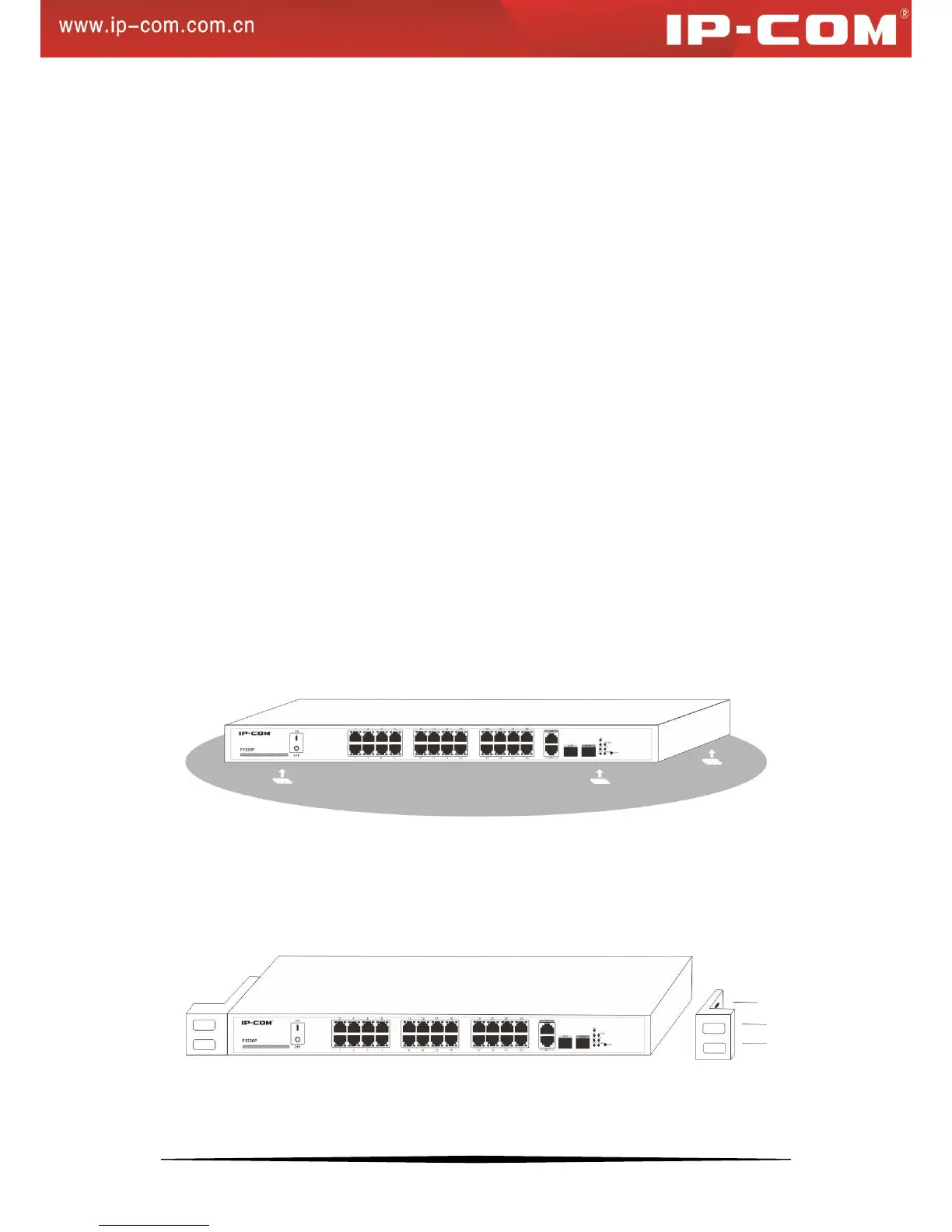For desktop installations, place the device on a flat table or shelf surface; for rack-mount installations, use a 19-inch