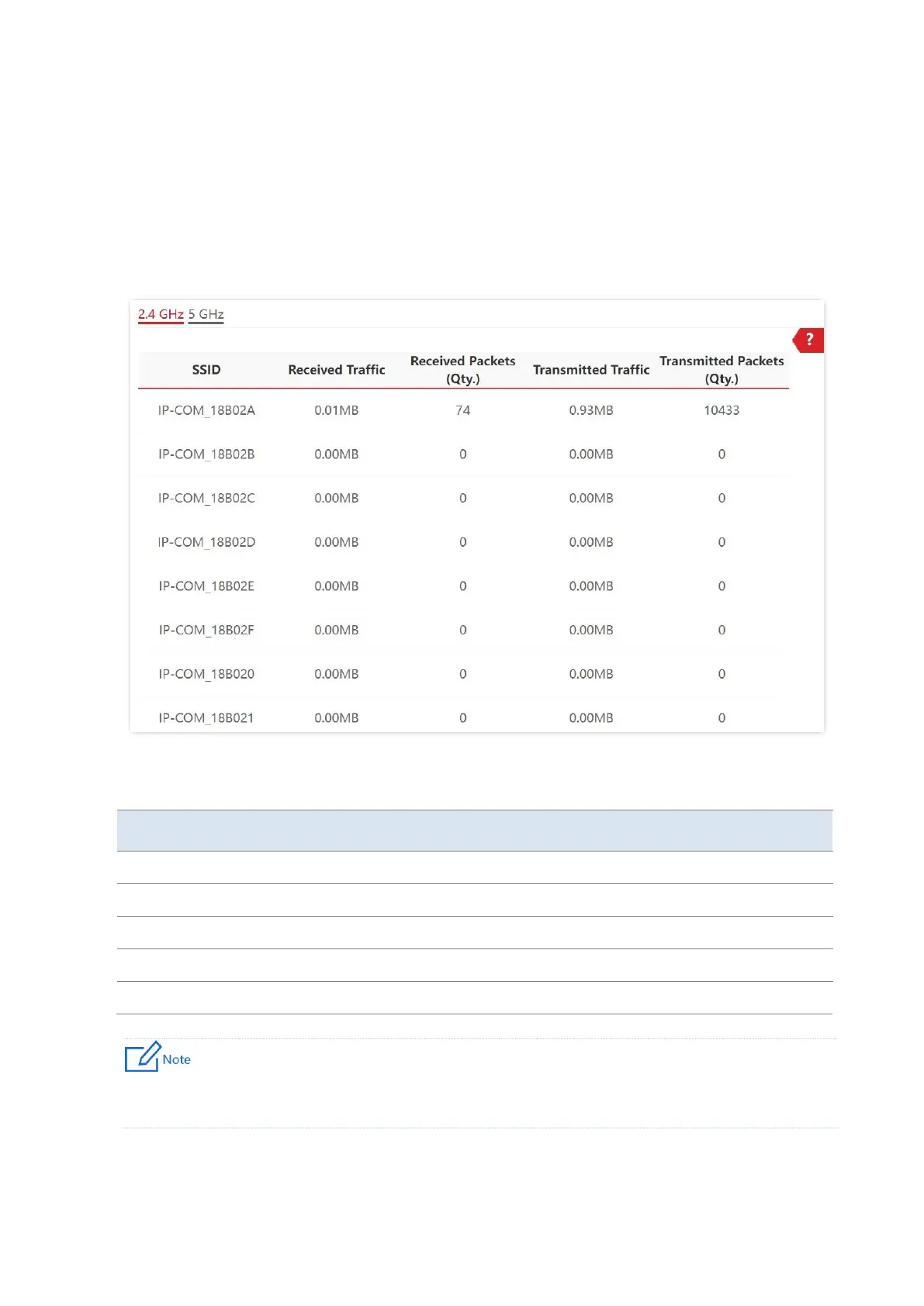 By default, the page displays the traffic statistics information of 2.4 GHz. To view information