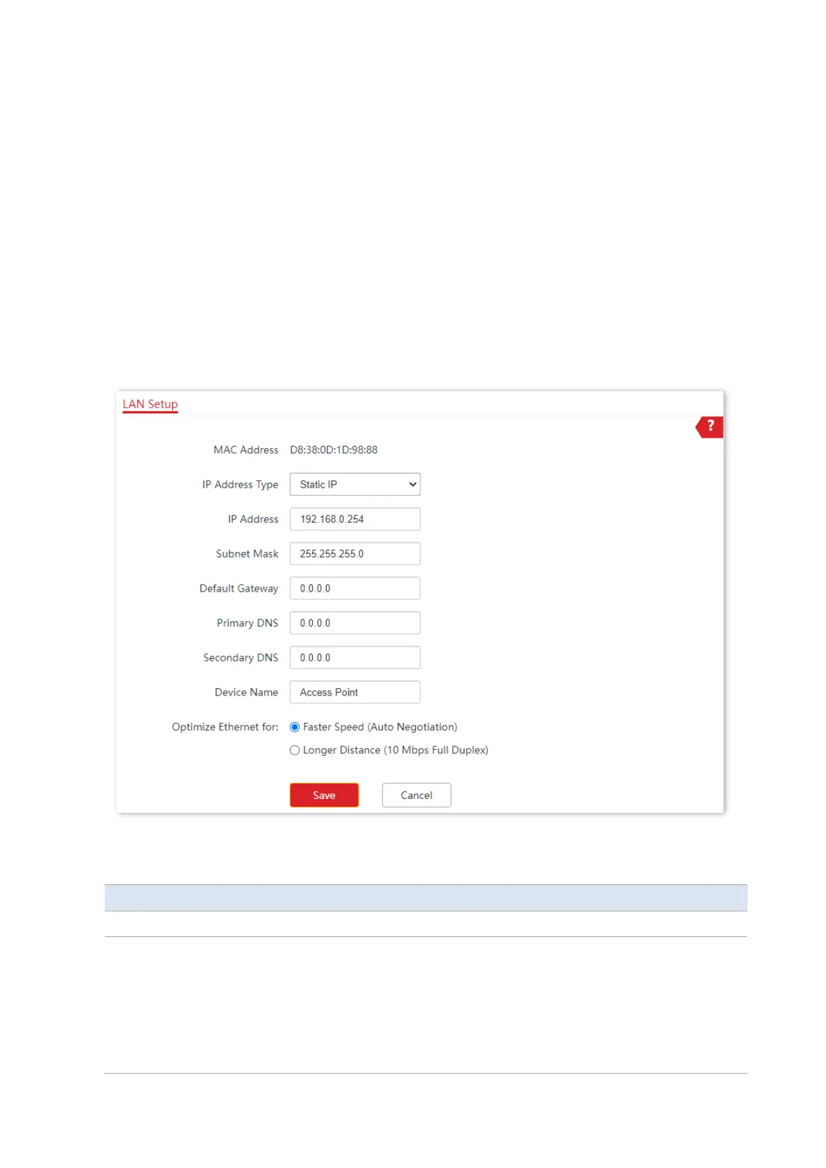 This page enables you to view the MAC address of the LAN port of the AP and set the name,