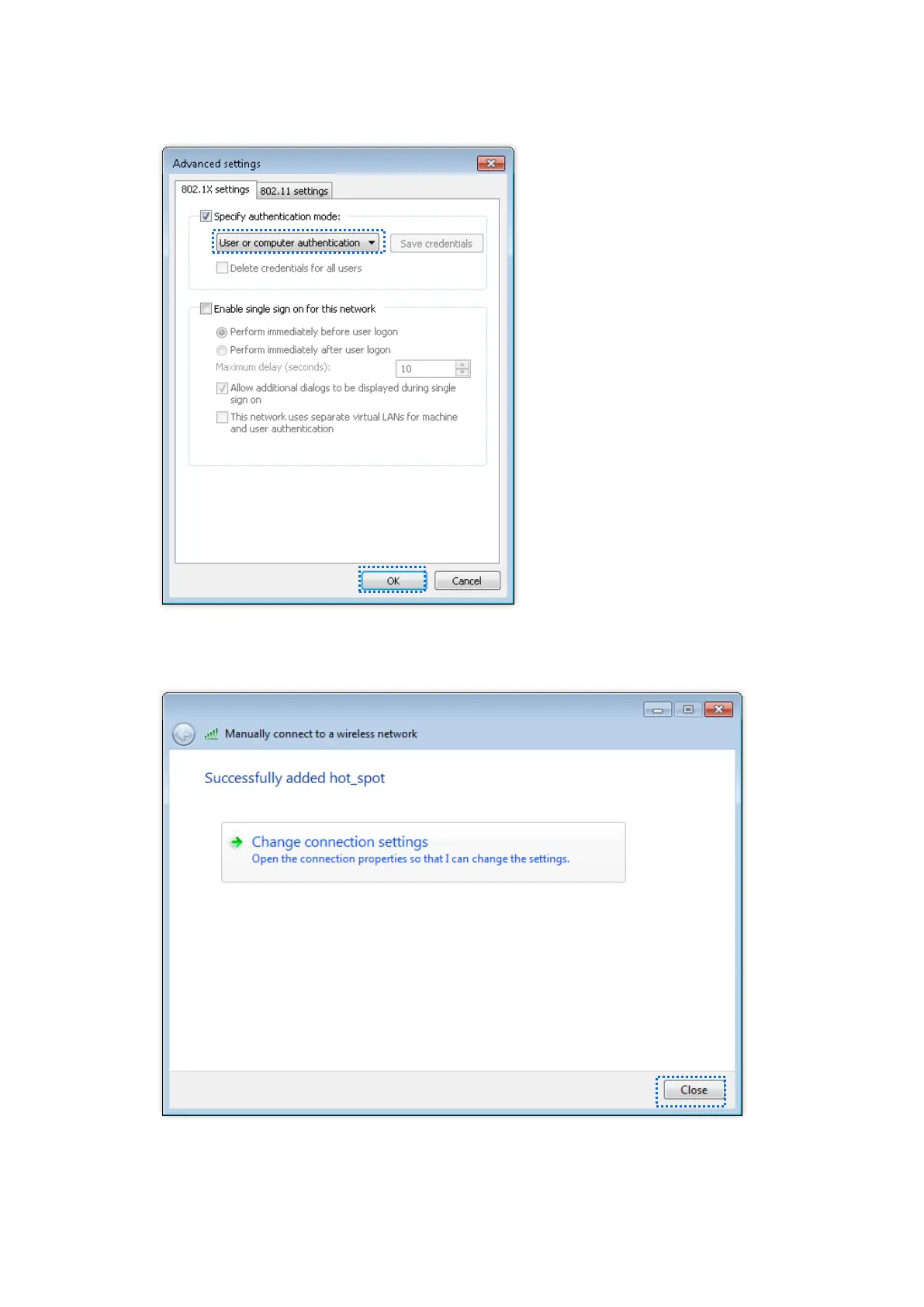 10. Select User or computer authentication and click OK.