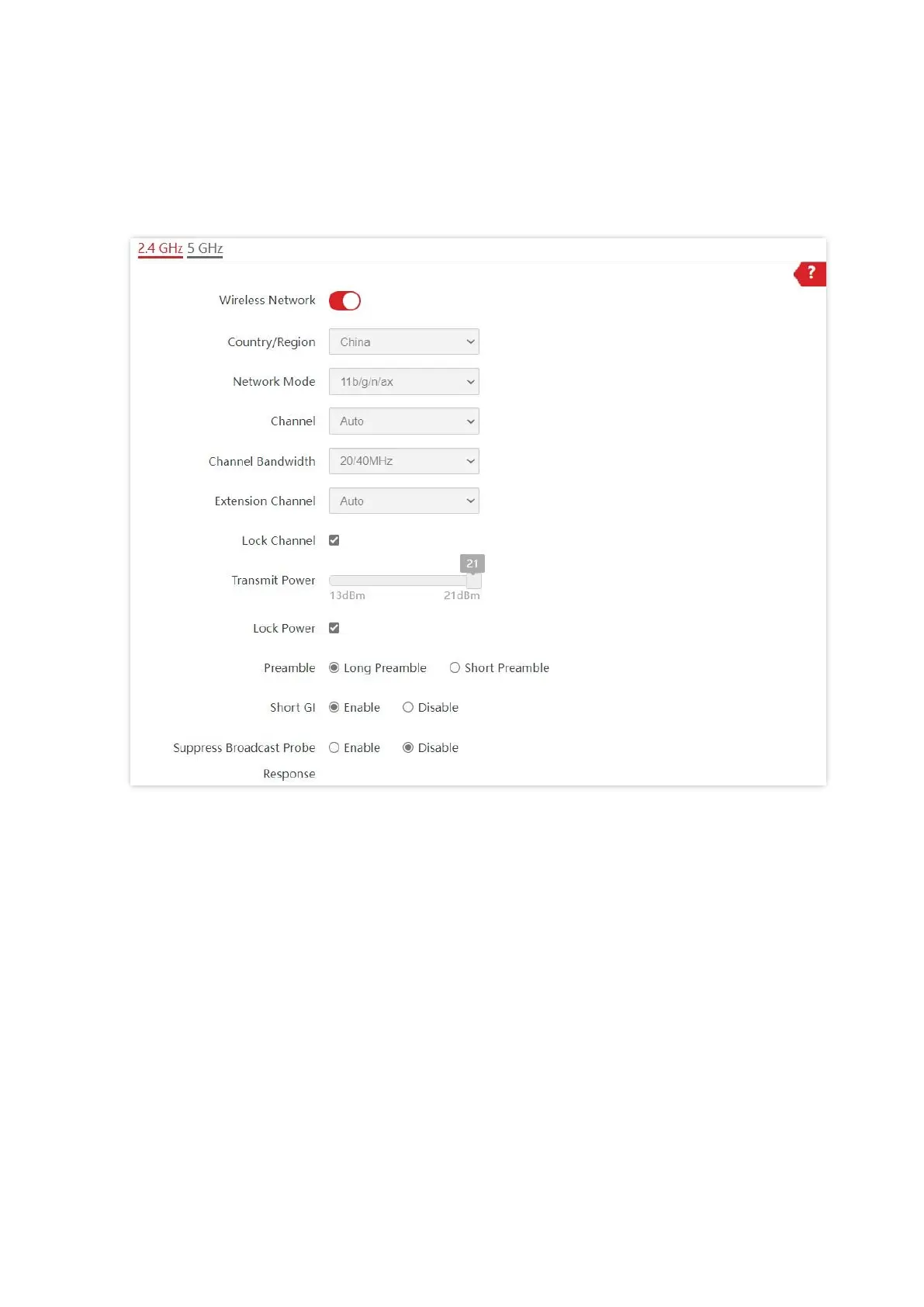 This page enables you to modify the basic radio parameters.