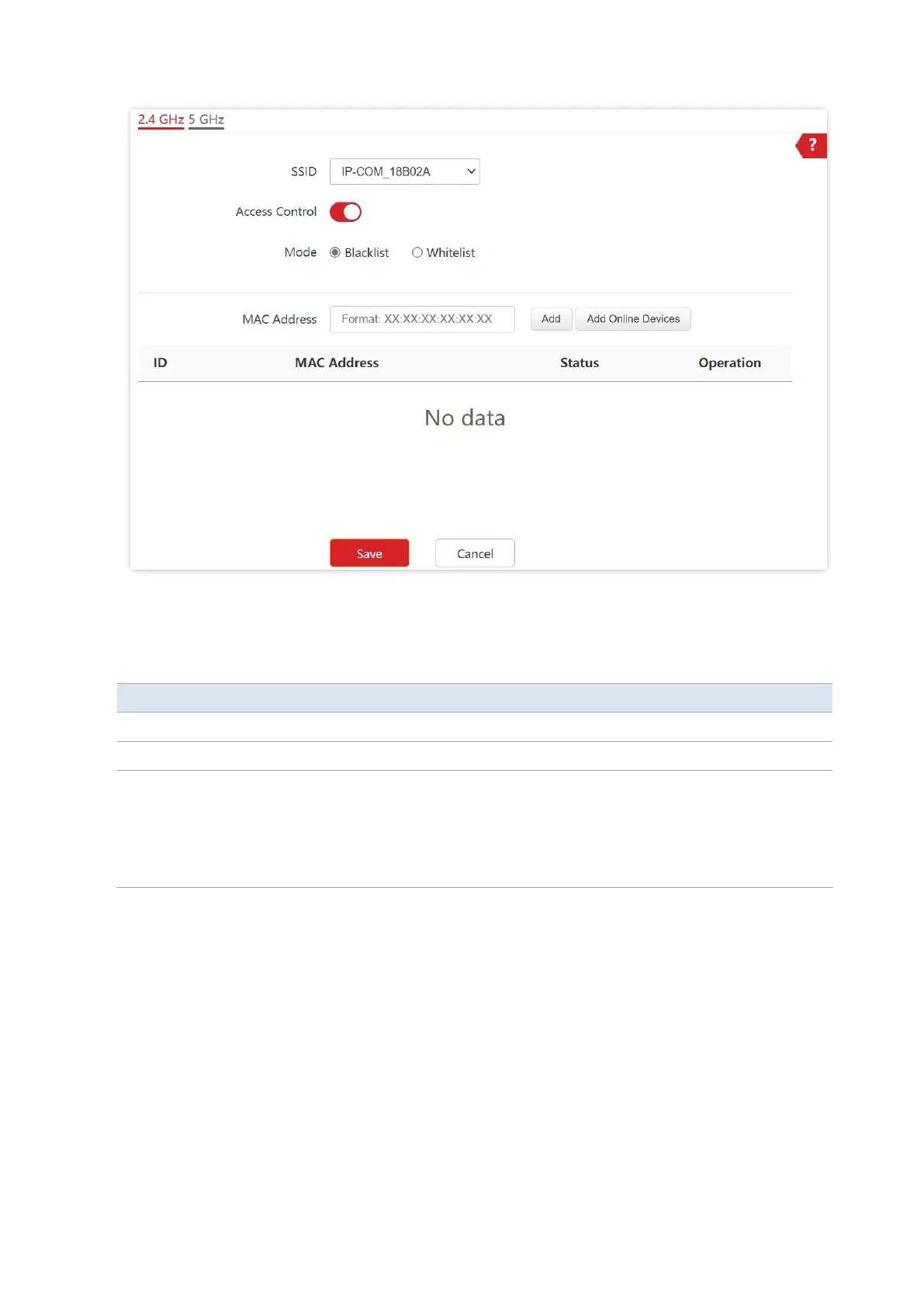 Whitelist: It indicates that only the wireless clients on the wireless access