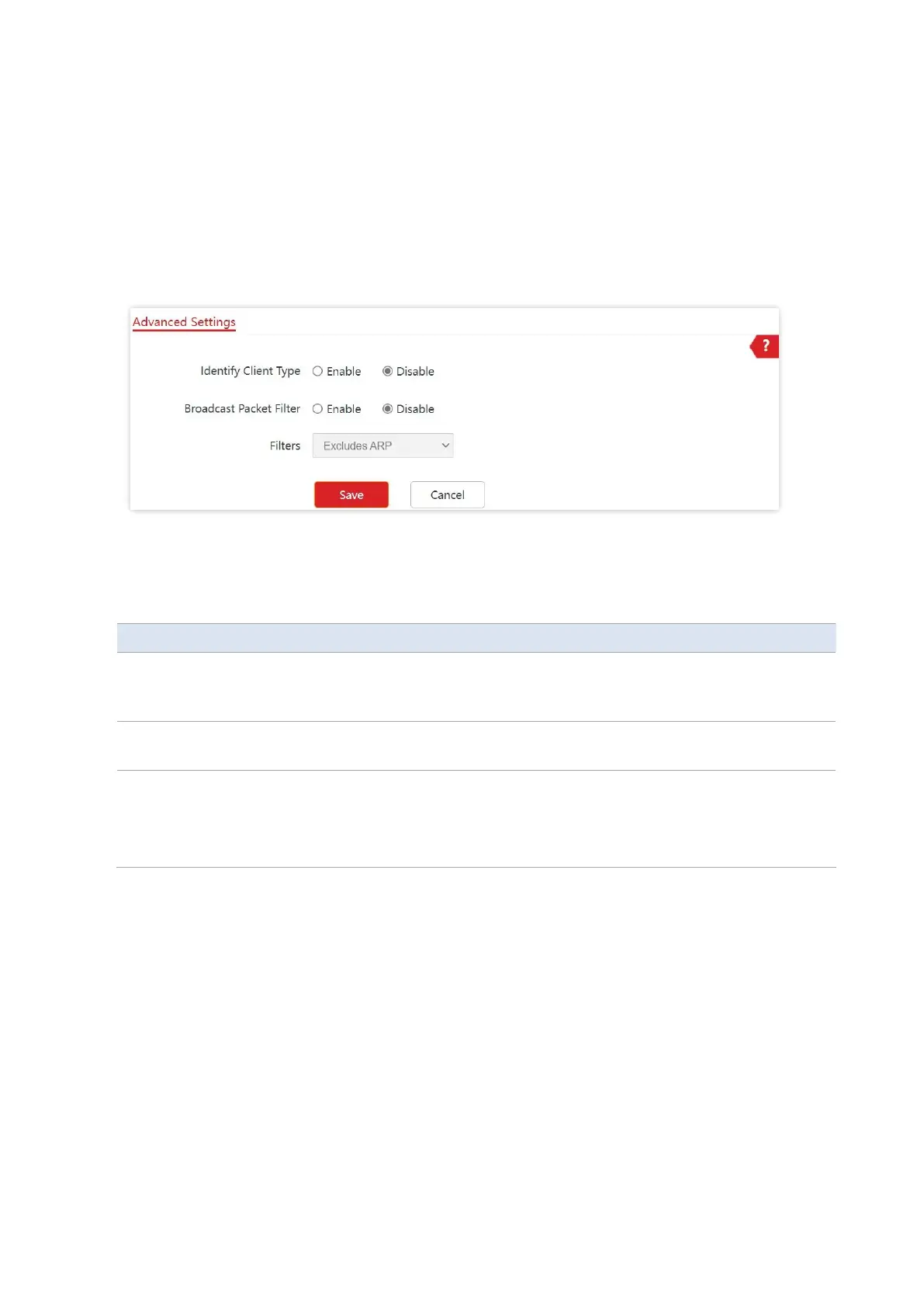 Select a mode after you enable the Broadcast Packet Filter function.