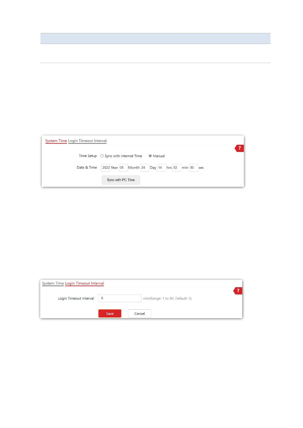 To access the page, choose Tools > Date & Time > Login Timeout Interval.