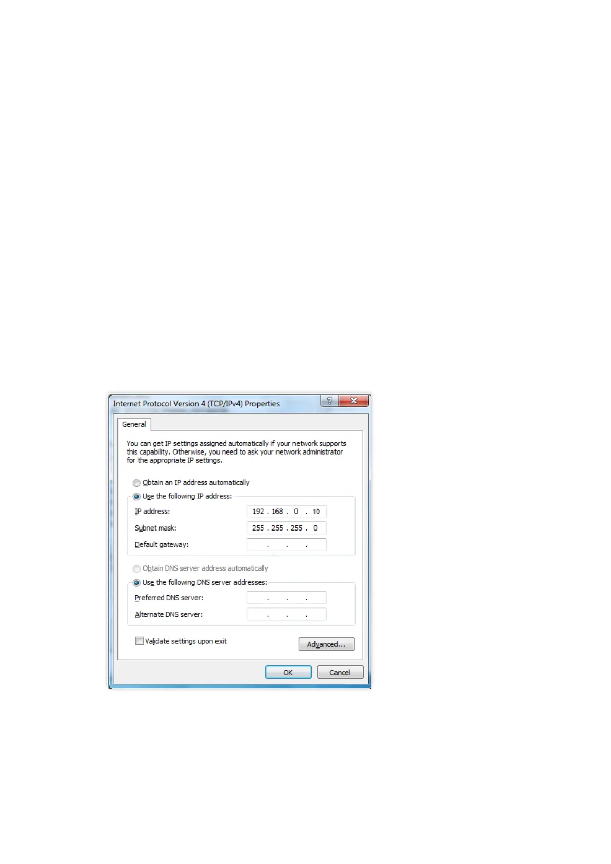 can be Set to 192.168.0.X (X ranges from 2 to 253 and is not occupied by other devices)