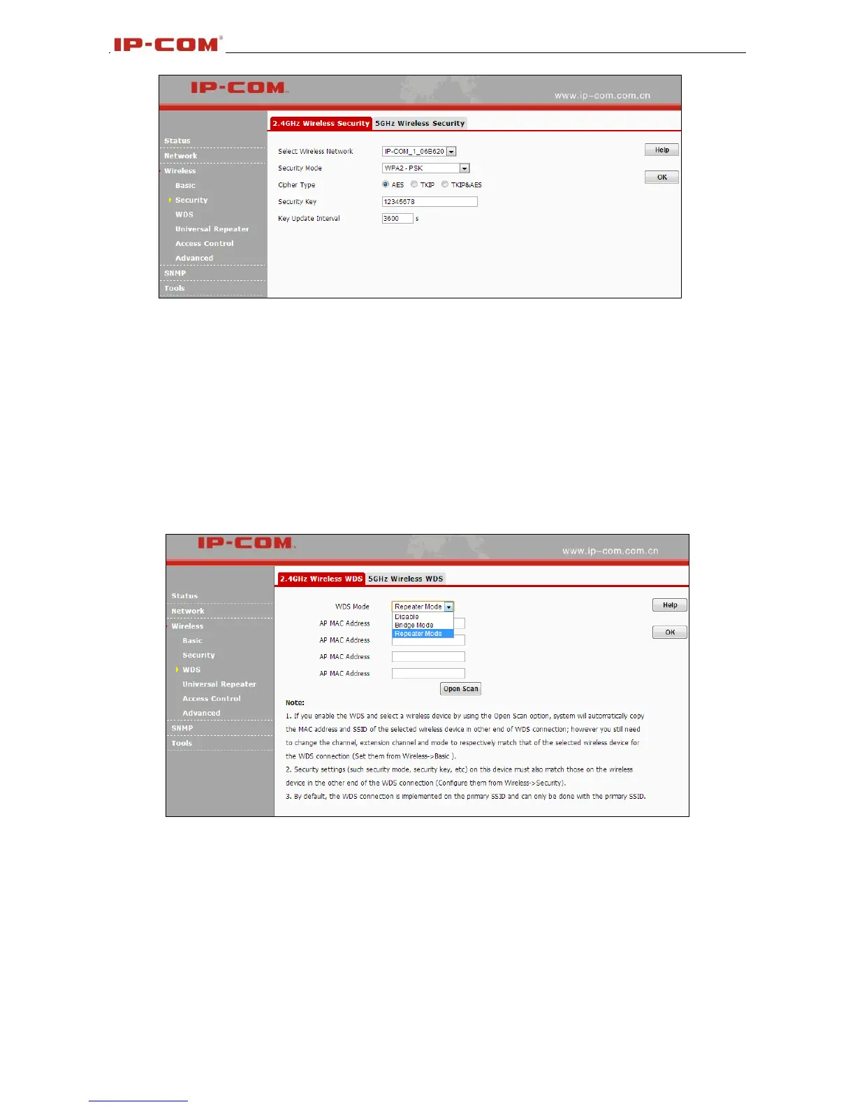 1. WDS Mode: Select Disable, Repeater Mode or Bridge Mode.