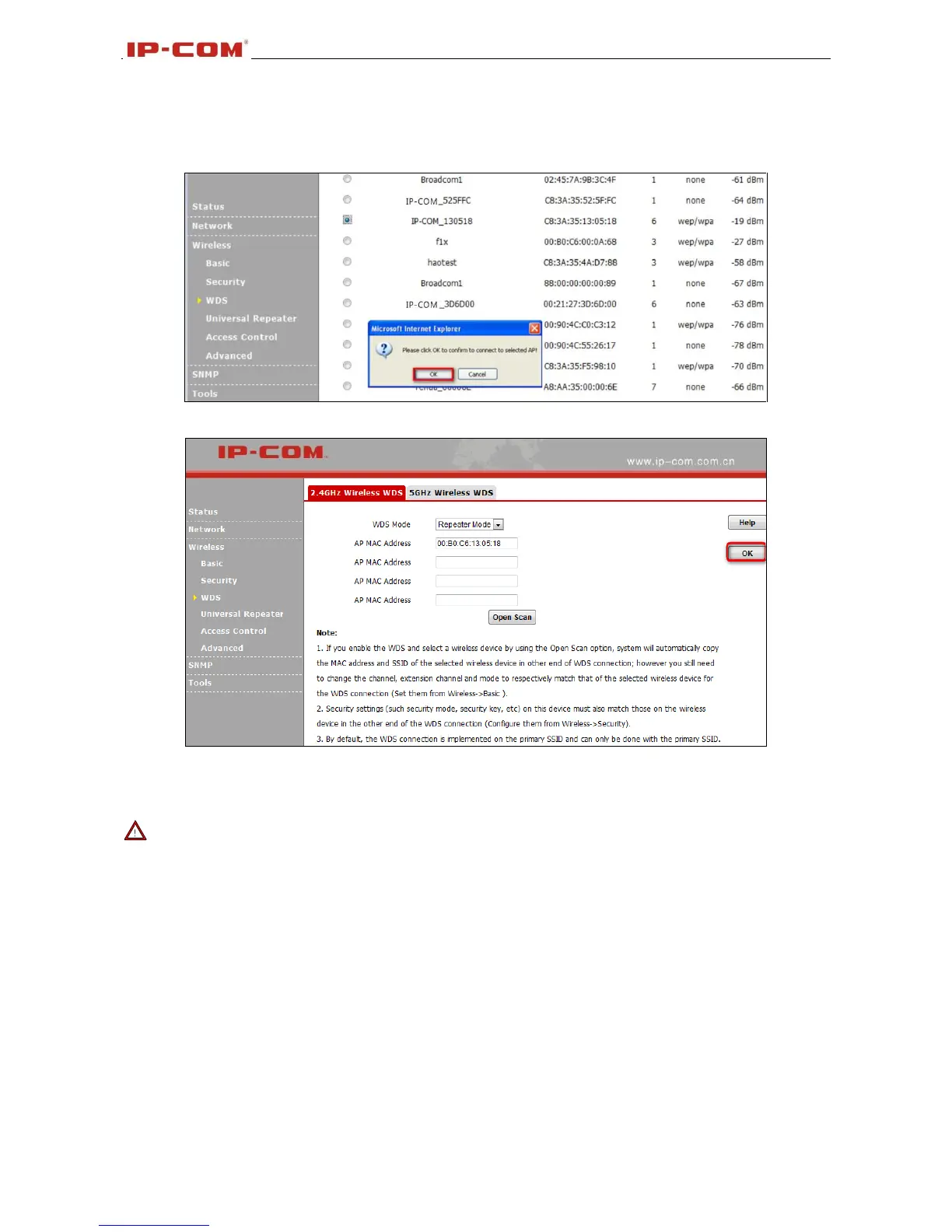 1)Click Open Scan to select the remote AP and click OK to add the corresponding MAC address