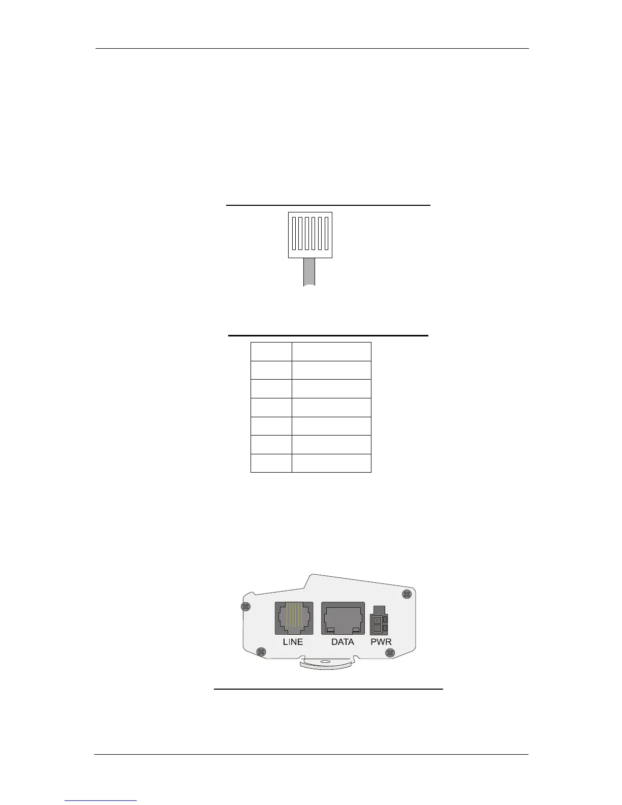 Figure 3-1 illustrates the pin layout of the RJ-11 line connector. Table 3-1 details