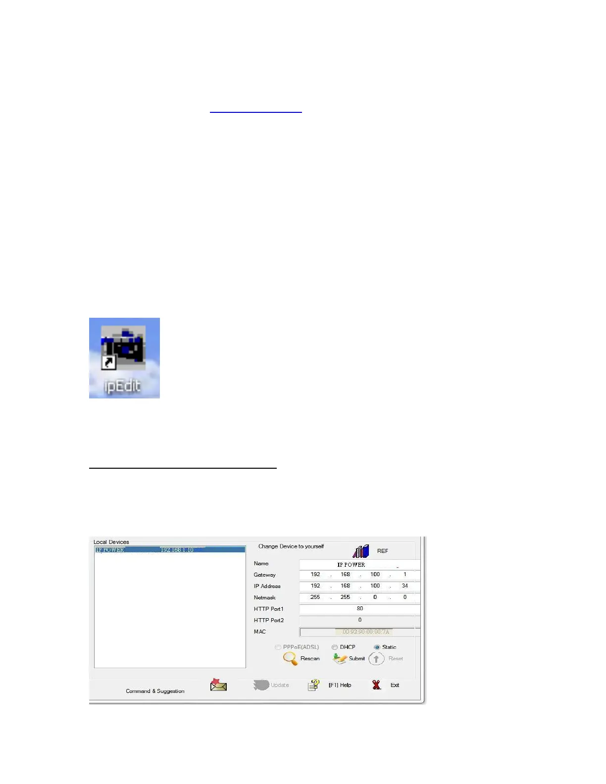 IP Edit is a search tool designed to search, configure, or access the IP Power 9828 from a local