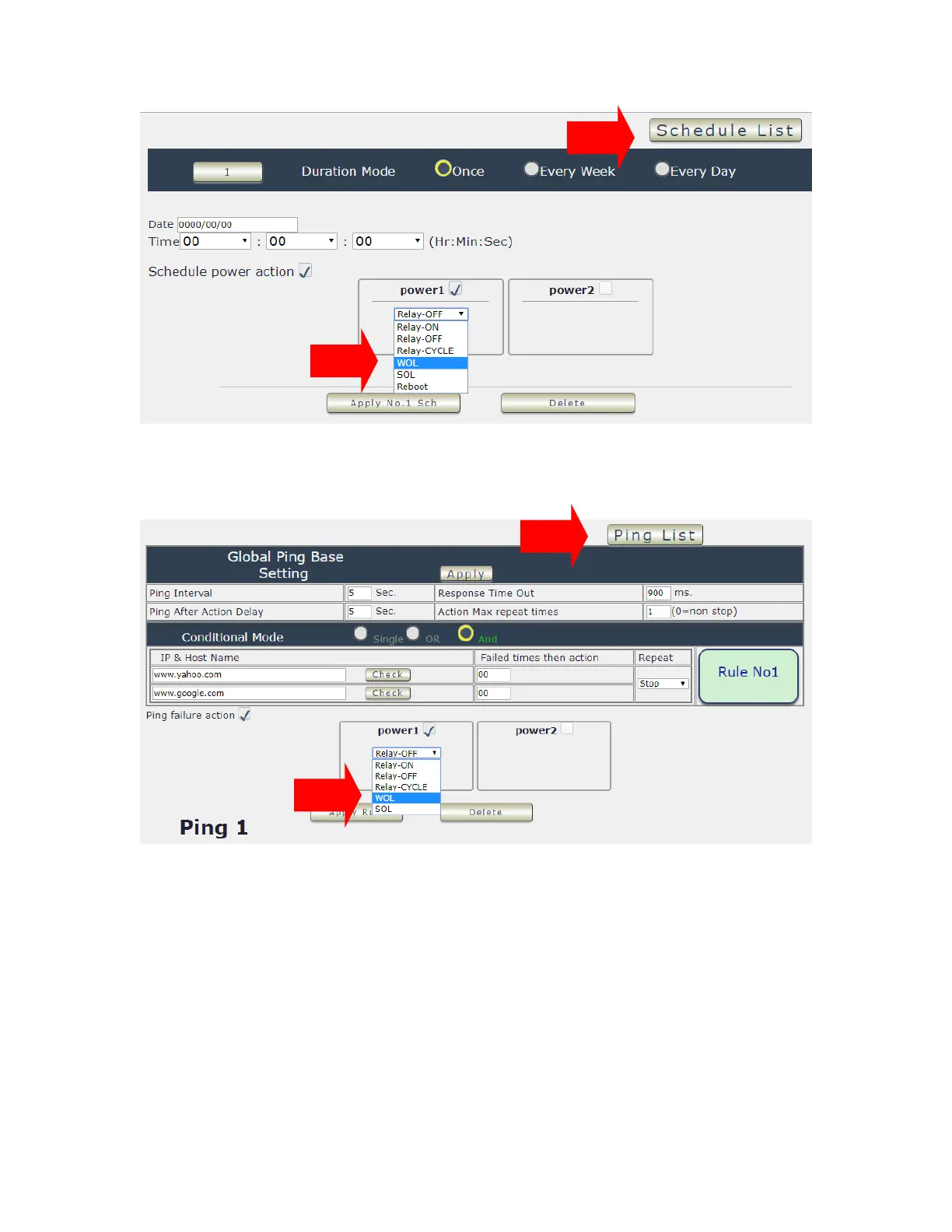 WOL in PING Setting :