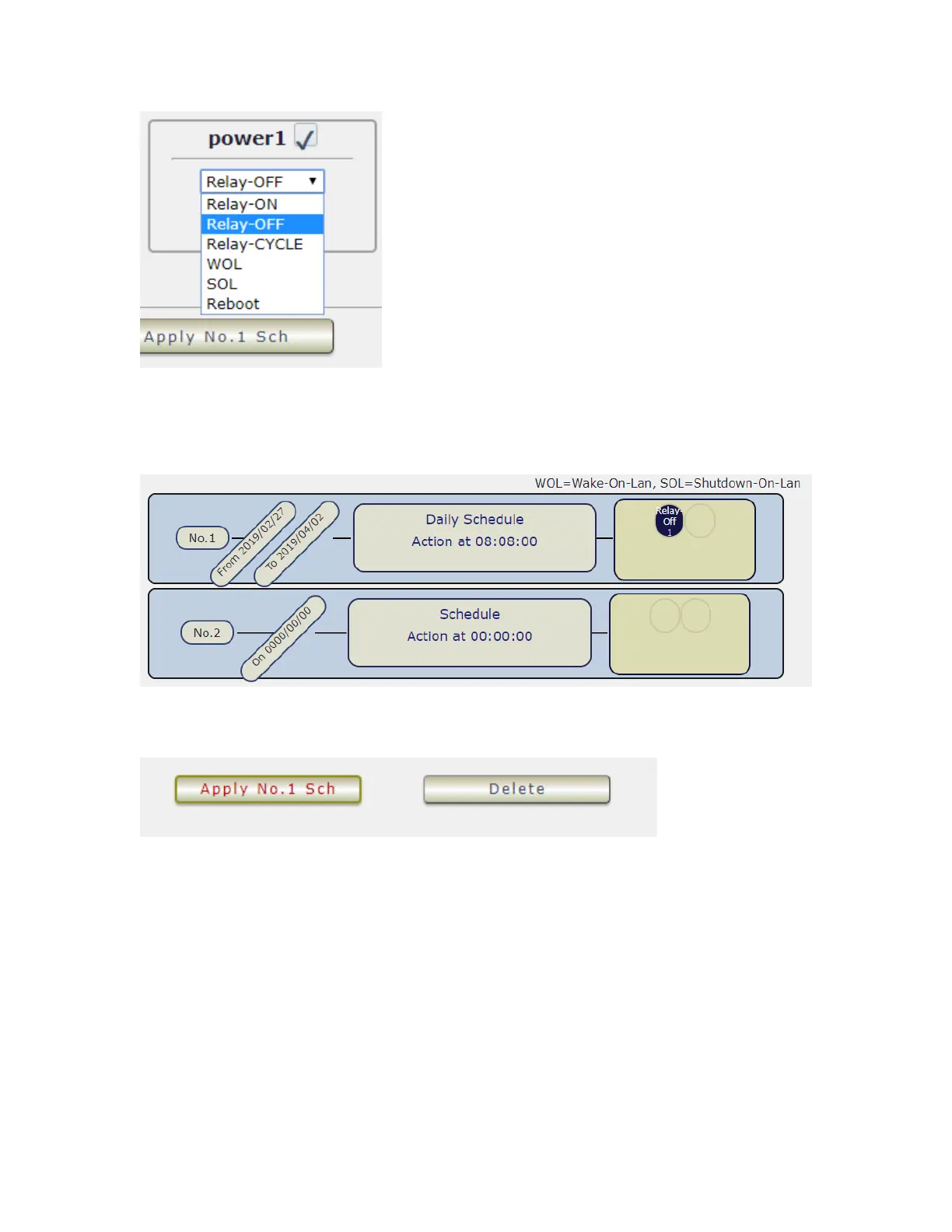 Date , Time and Action. Then Press “Apply Np. X Sch “ button to confirm the setting and you
