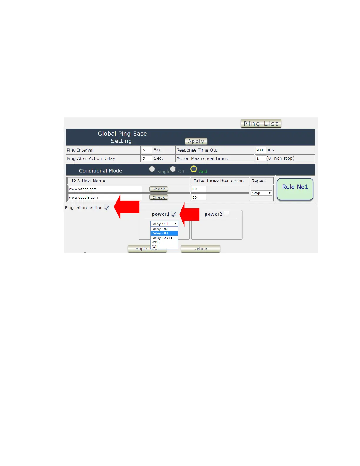 ⚫ Enable Ping function : In the selected Rules number , please select the outlet number power
