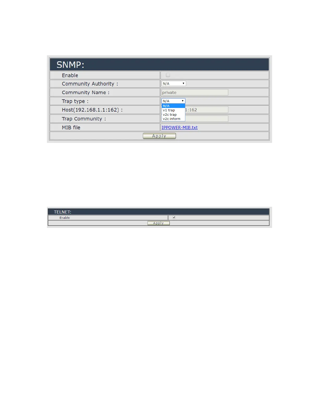 In “ Trap “ type ,user can select “ v1 trap “ , “ v2c trap “ or “ v2c inform”