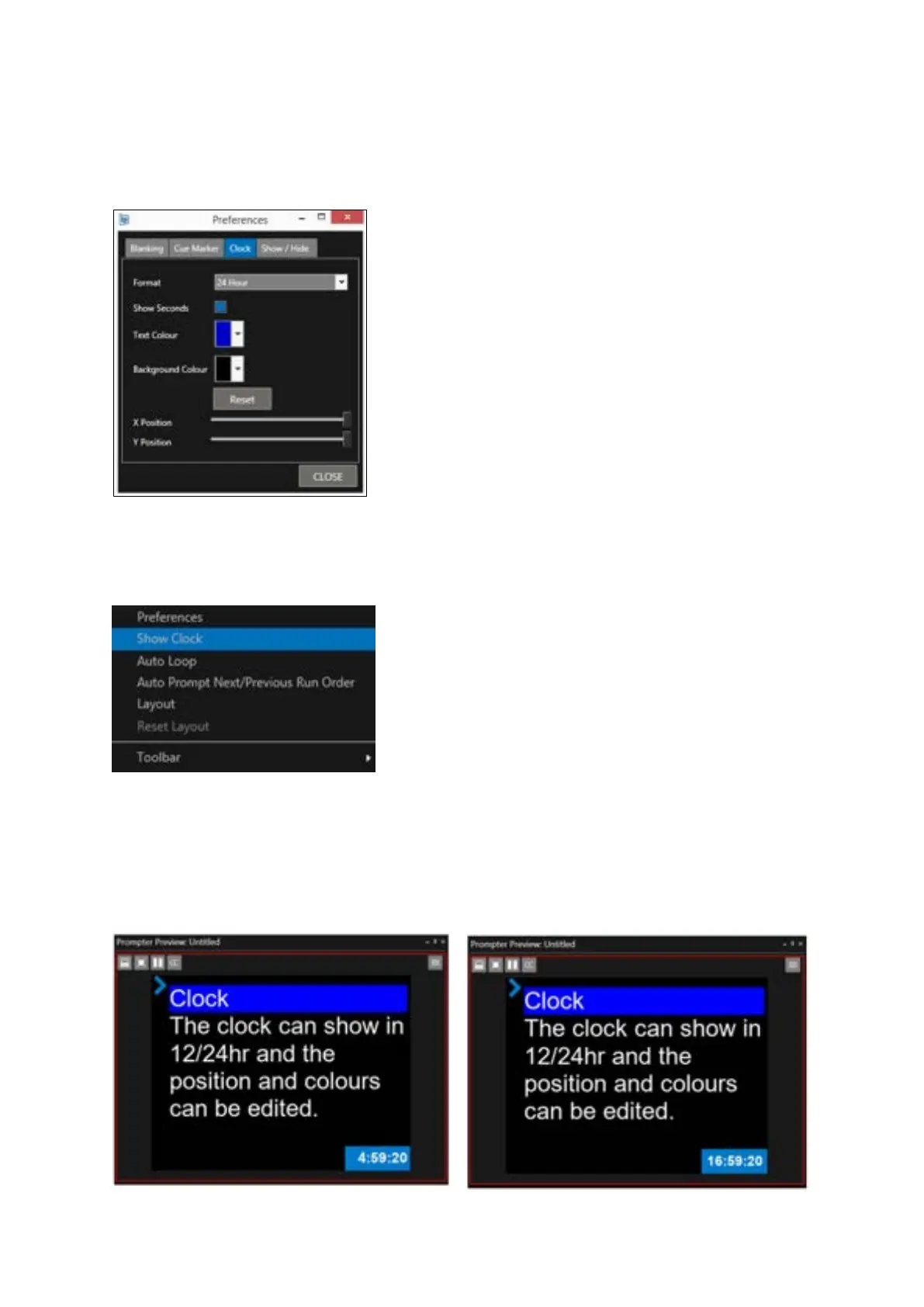 Please Note: the settings within the Preferences are applied to the clock. To activate the clock itself