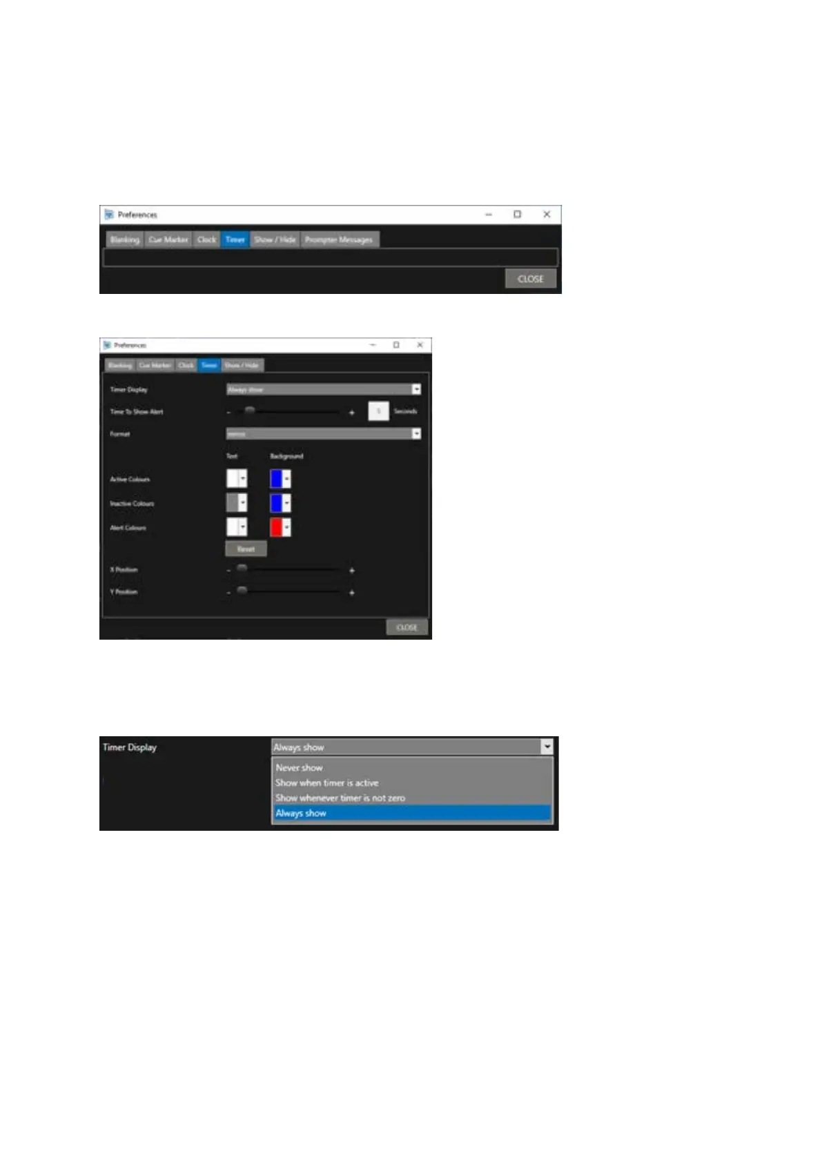 To configure the Timers appearance, click the Prompter Preview burger, then Preferences, then the