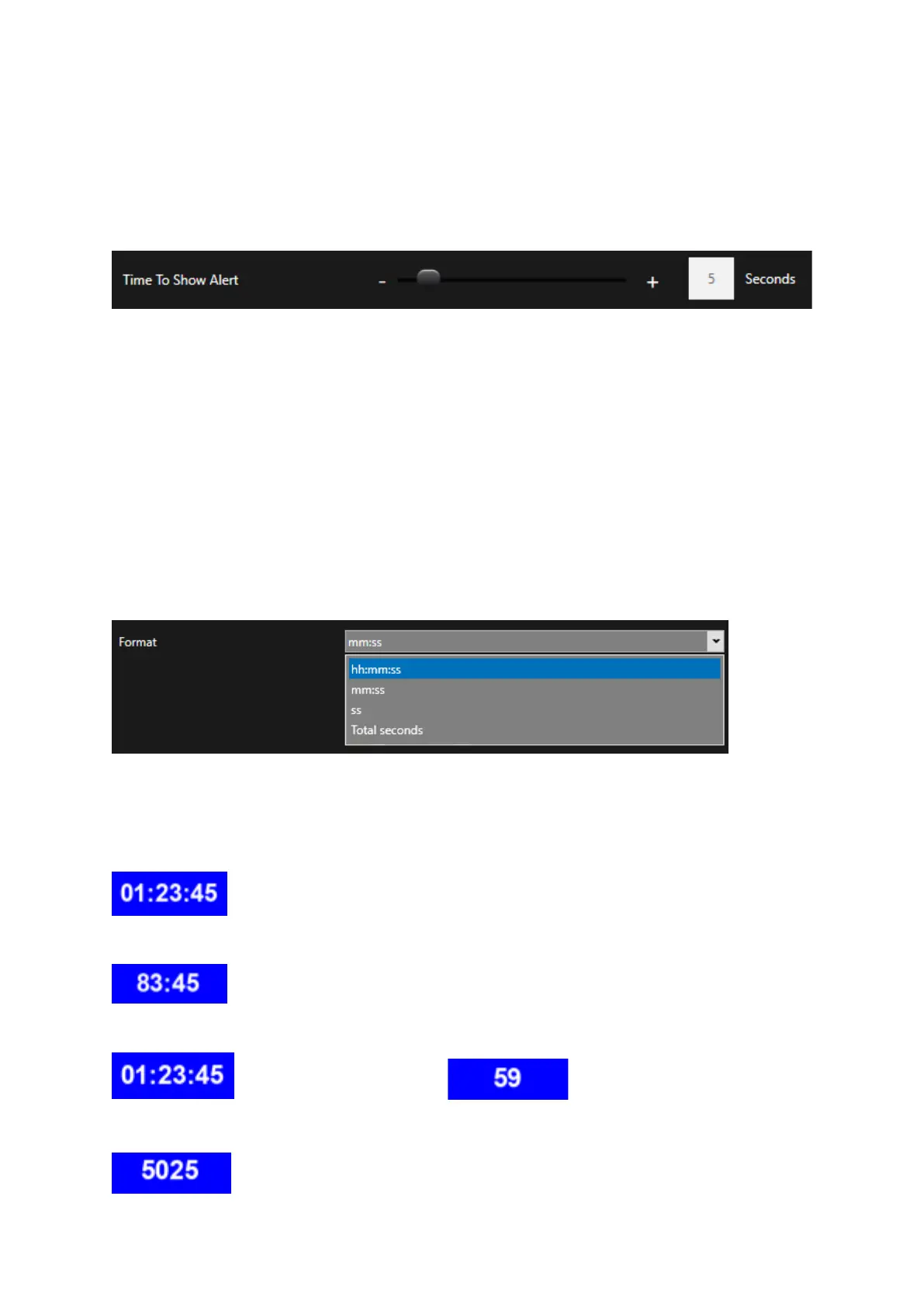 Please Note: Time To Show Alert is only visible when Stop and alert at zero is selected in Timer