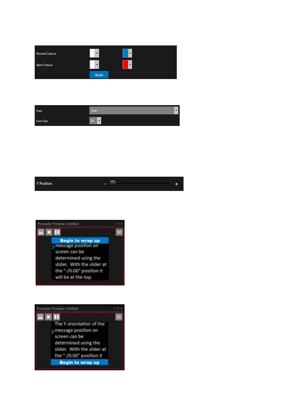 The Y axis orientation of the message position on screen can be determined using the slider.