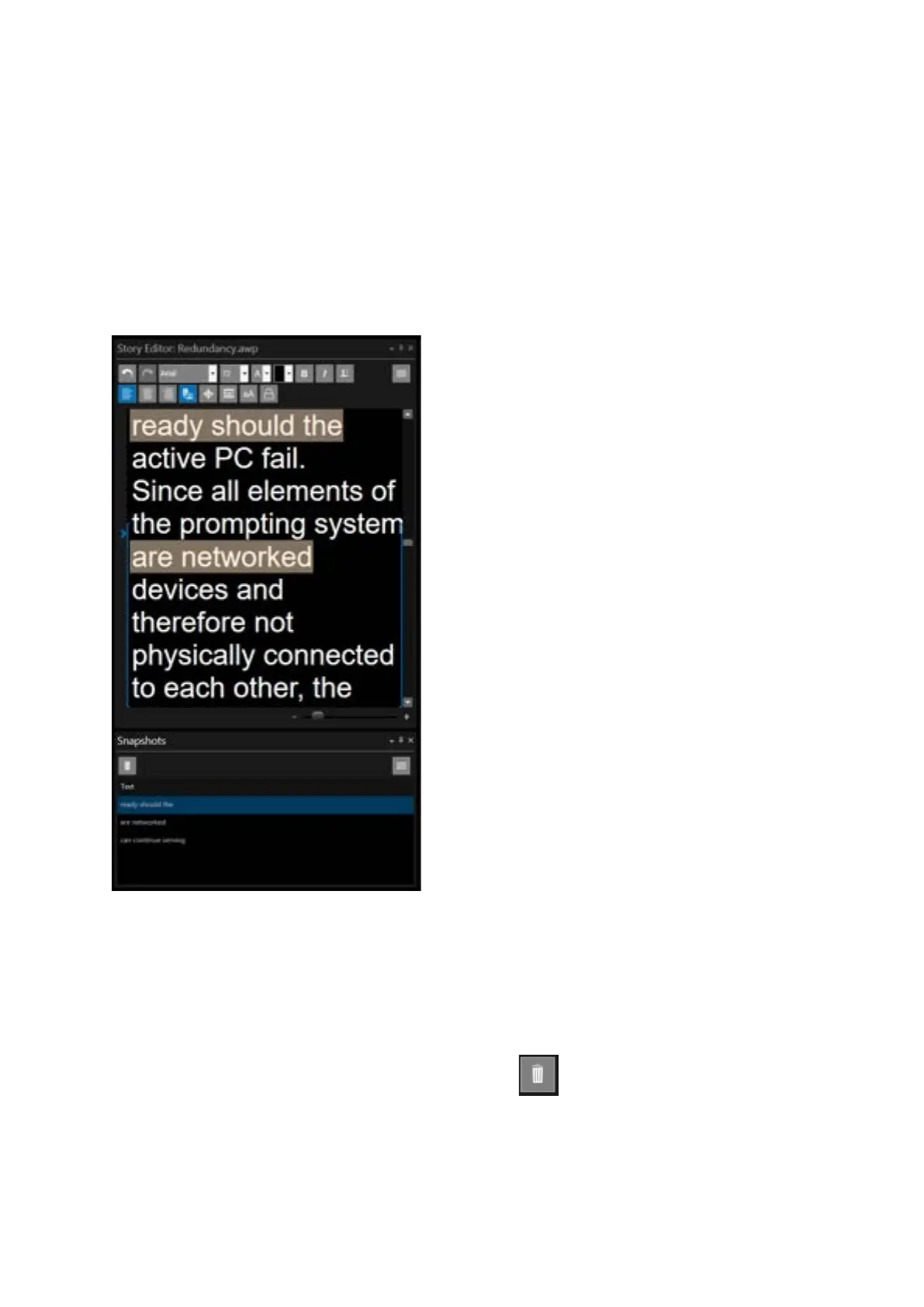 The text in the Story Editor will be highlighted in Grey and the text will appear in the Snapshot pane